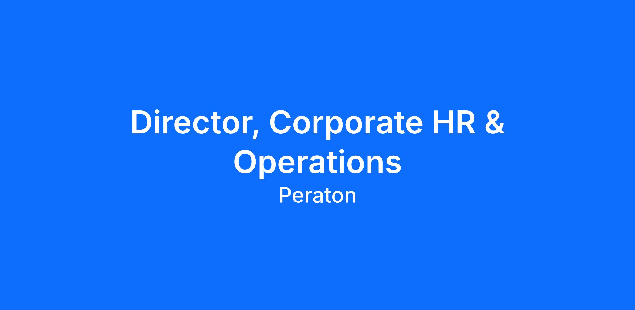 Director, Corporate HR & Operations
