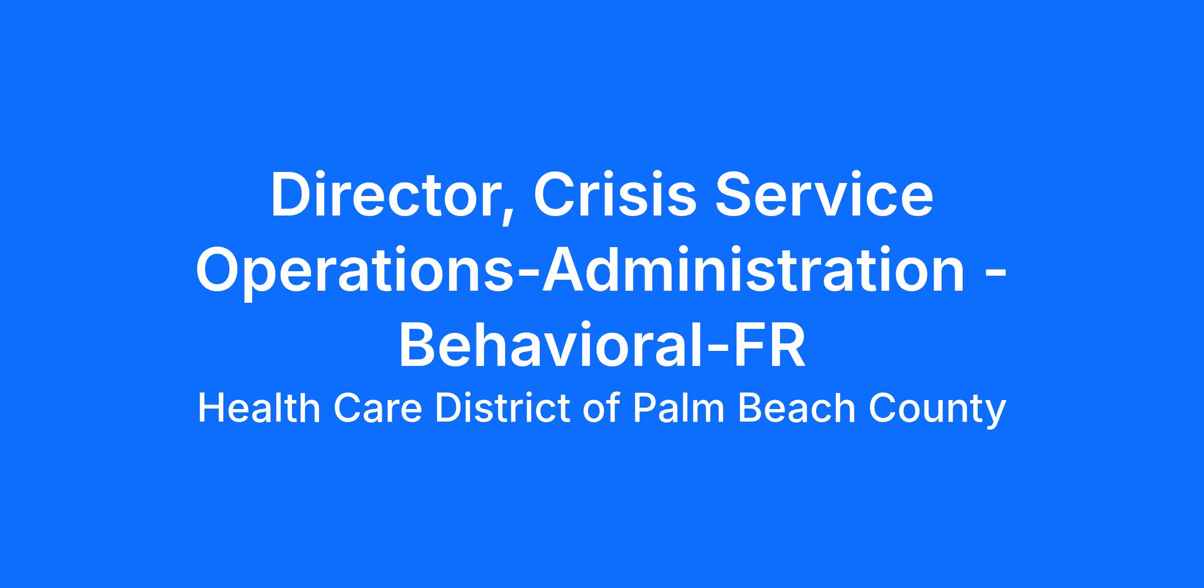Provides executive leadership and strategic oversight for all crisis response and stabilization programs, ensuring alignment with system goals for access, quality, and safety.