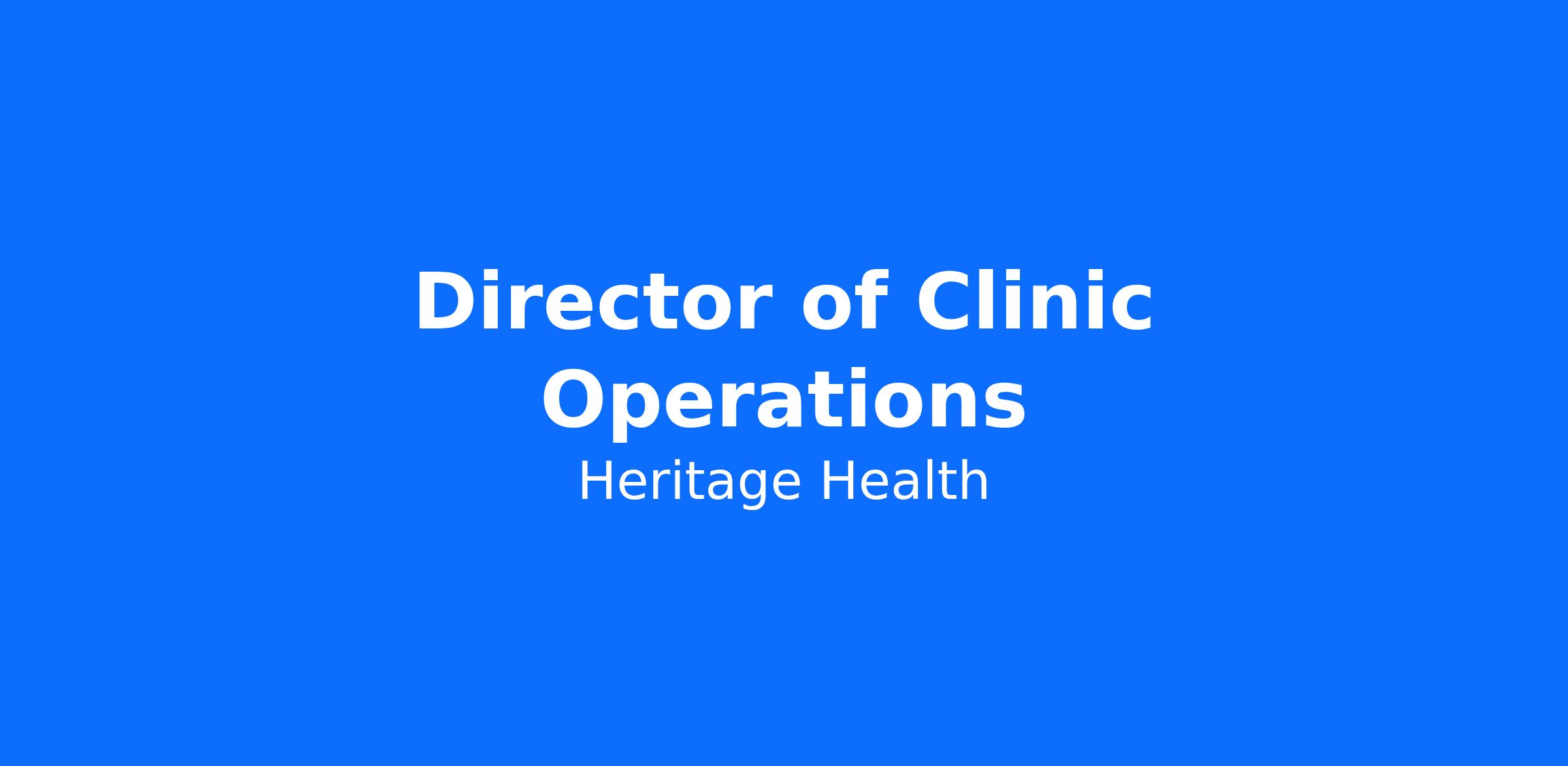 The Director of Clinic Operations provides strategic and operational leadership across all Heritage Health clinic locations. This role is responsible for clinic access, flow, productivity, staffing effectiveness, patient experience, and operational consistency. The Director oversees Clinic Managers and works in close partnership with Medical Directors, Medical Assistant leadership, Customer Service leadership, centralized services, and executive leadership to remove barriers to care and ensure clinics function as high-reliability, patient-centered systems.
