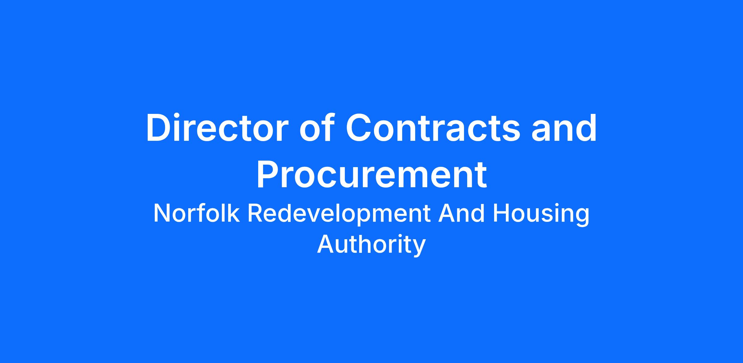 The Director of Contracts and Procurement is responsible for planning, directing, and overseeing all procurement, contracting, and purchasing activities of NRHA in compliance with U.S. Department of Housing and Urban Development (HUD) regulations, federal, state, and local laws, and NRHA policies which reports to the Chief Operating Officer (COO). This role ensures the acquisition of goods, services, construction, and professional services in a transparent, competitive, and cost-effective manner while supporting NRHA’s mission to provide safe, decent, and affordable housing.