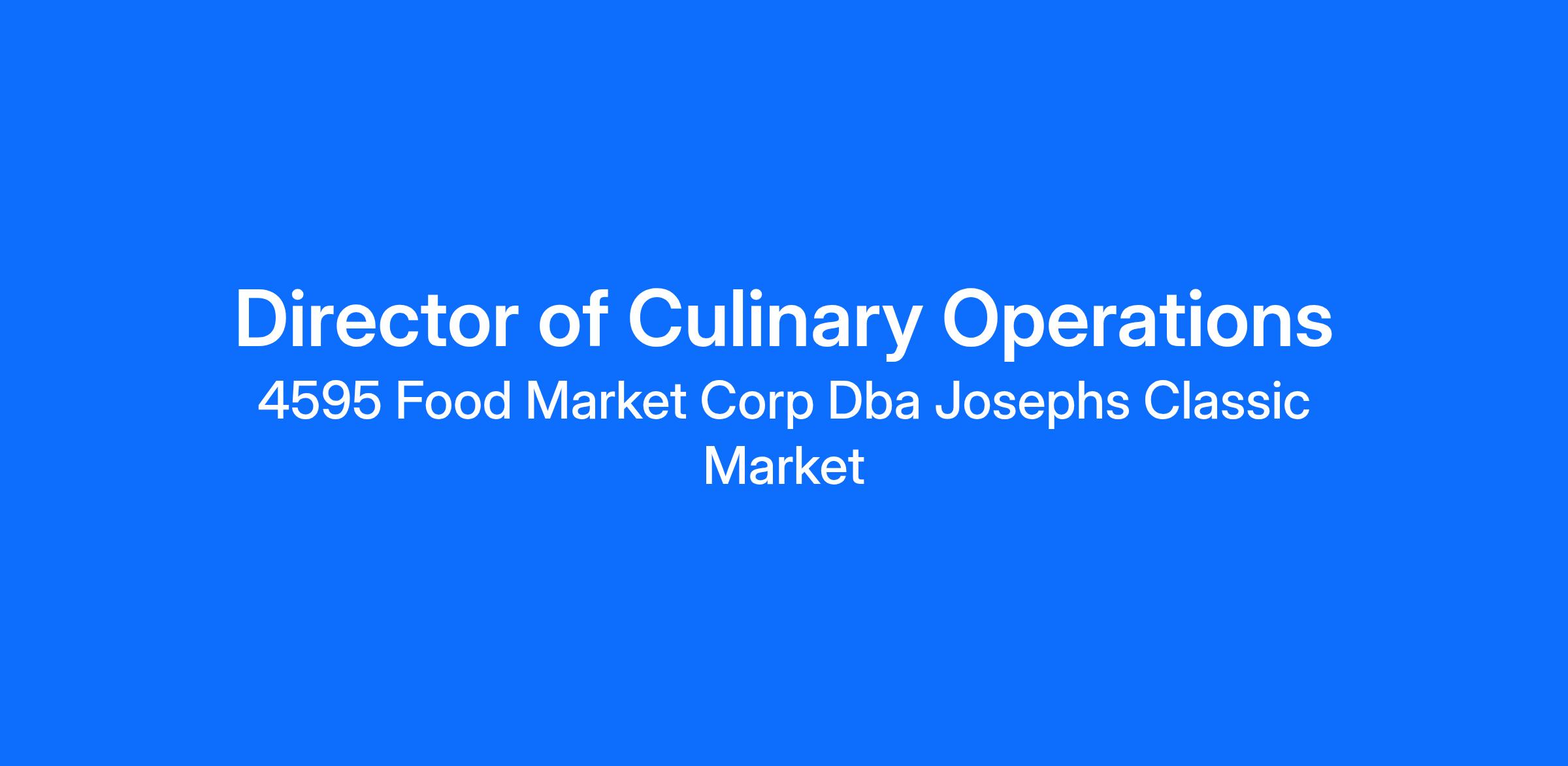Joseph’s Classic Market is a family-owned chain of gourmet markets with four retail locations in Palm Beach County and a centralized kitchen and bakery production facility. We are committed to delivering the highest quality food and exceptional customer service. As a key member of our leadership team, the Director of Culinary Operations plays a vital role in ensuring excellence across all culinary operations.