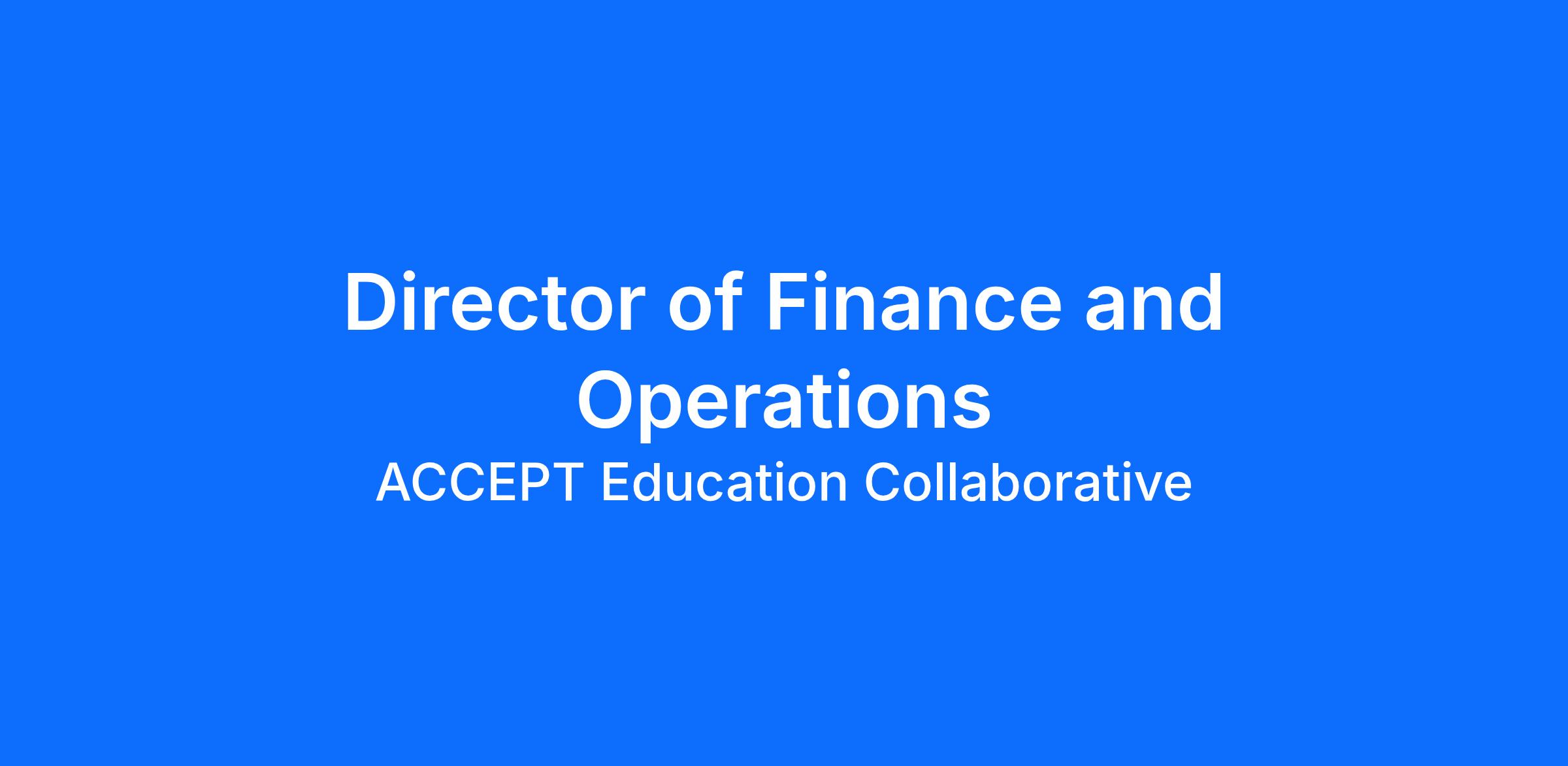 Position Summary: Under the general supervision of the Executive Director, the Director of Finance and Operations coordinates and oversees the daily management of all of the business affairs of the collaborative and maintains records in accordance with generally accepted accounting principles.