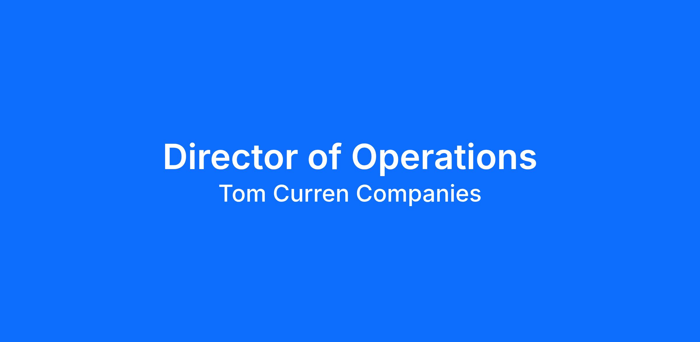 At Tom Curren Companies, operations leadership isn't just about running the show; it's about leading with clarity, driving improvements, and ensuring our projects exceed client expectations. If you're a leader who enjoys creating structure, solving problems, and fostering accountability, this is the role for you. We offer a collaborative environment where your contributions make a real impact and you get to work alongside a team that values quality, integrity, and growth.