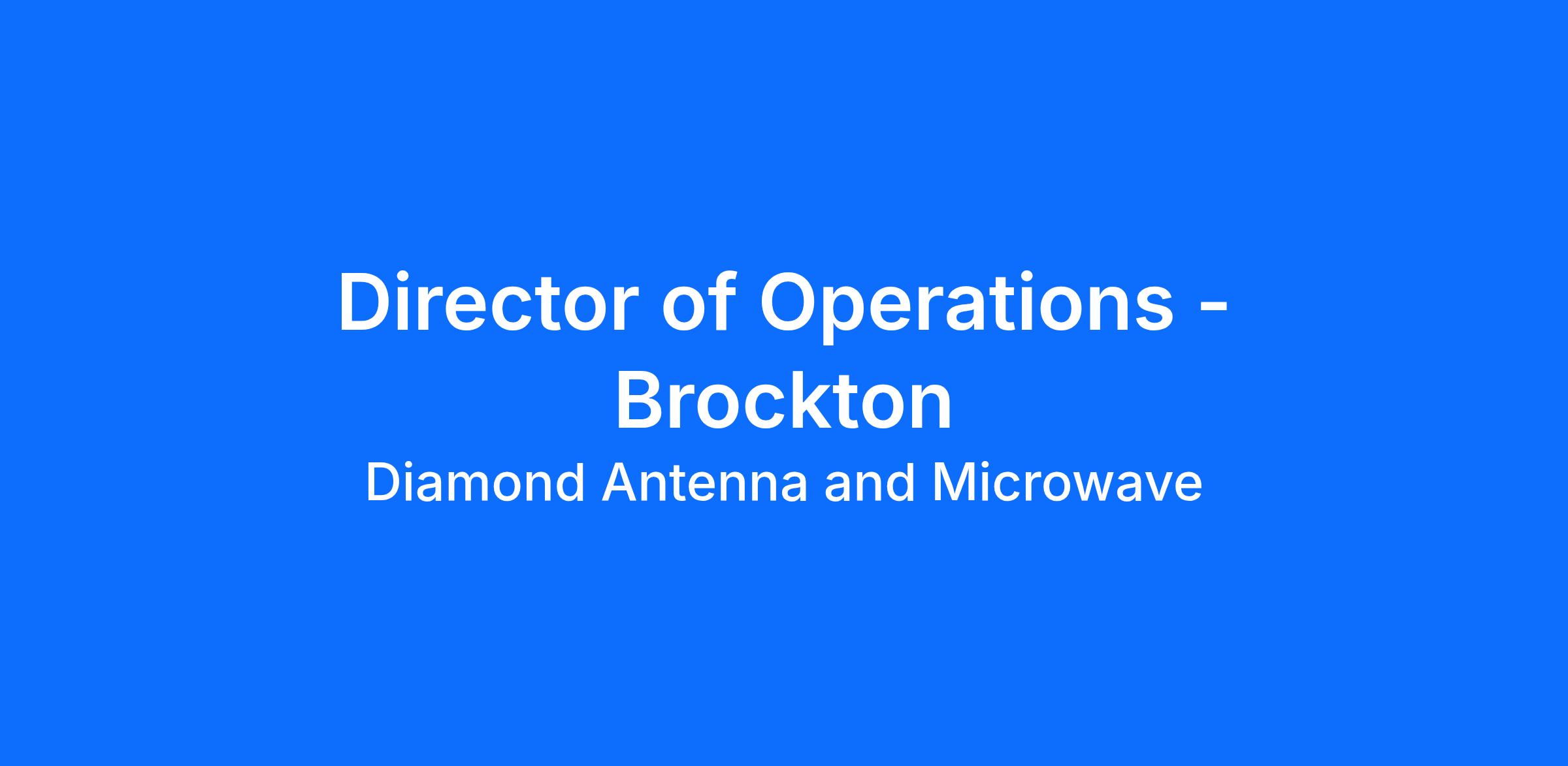Diamond Antenna and Microwave Corporation is seeking a hands on Director of Operations at its Antenna Associates, Inc., Brockton, MA location to lead all aspects of our manufacturing operations in our small but rapidly growing manufacturing environment. This role is responsible for driving operational excellence, ensuring product quality, managing budgets and fostering a culture of continuous improvements. The ideal candidate will have strong leadership skills, deep manufacturing experience in complex builds, and a proven track record of delivering results.