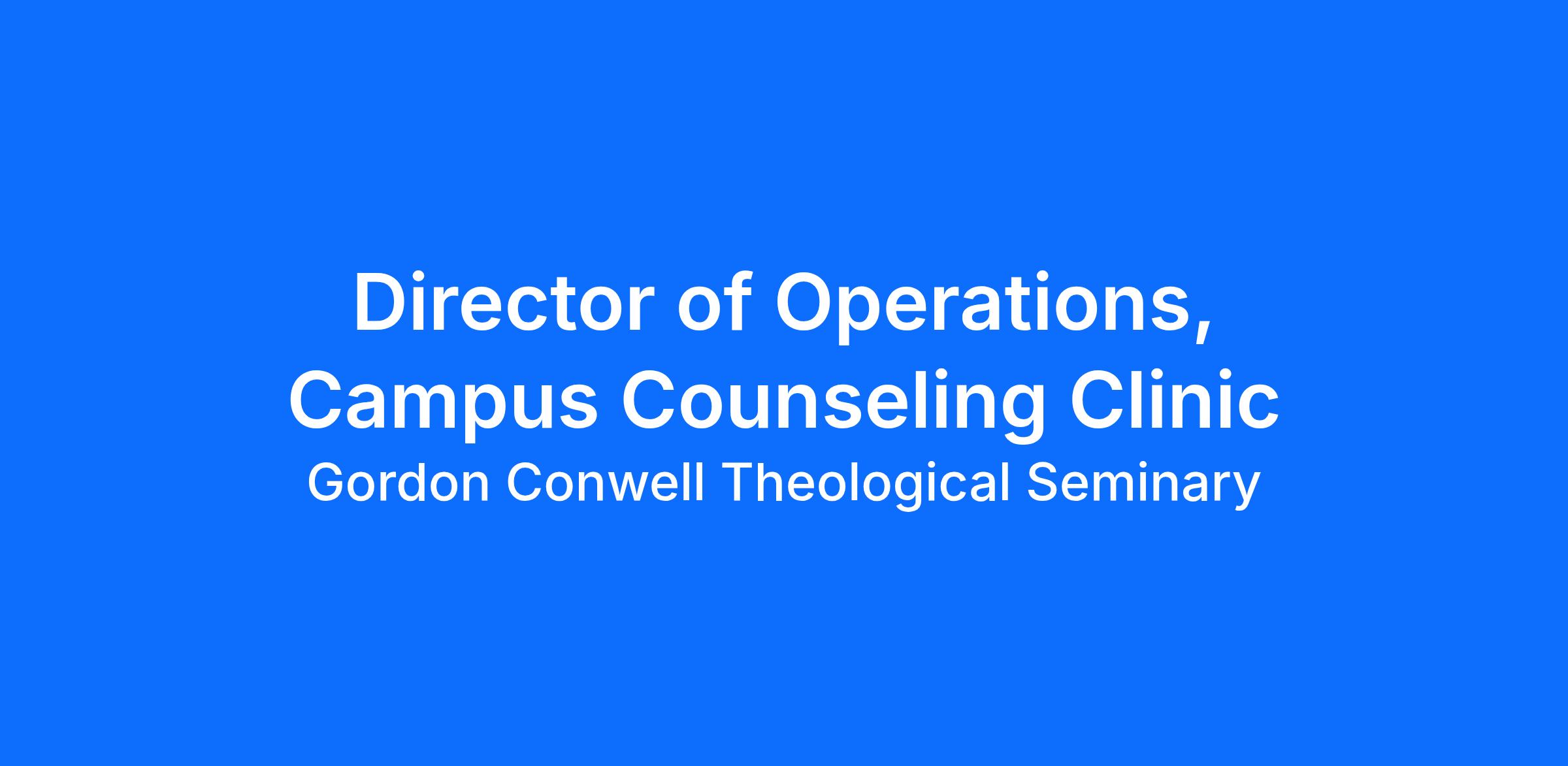 The Director of Operations for the Community Counseling Center on the Charlotte campus of Gordon-Conwell Theological Seminary includes overseeing the operations of the center, establishing and maintaining relationships with community referral sources, providing clinical supervision to student interns, and overseeing the center’s support staff. This position will be hired initially as Director of Operations with the expectation to transition to Administrative Faculty in Fall 2026. Administrative Faculty teach two courses per year and participate in regular faculty activities but are not required to maintain a research agenda.