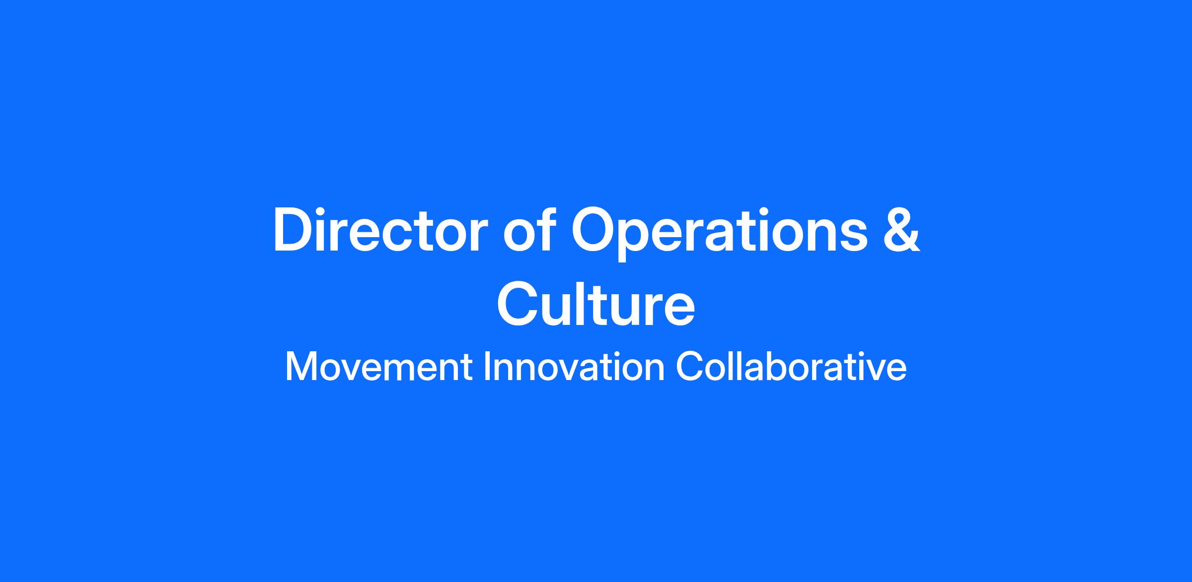 Movement Innovation Collaborative is an equal-opportunity employer.