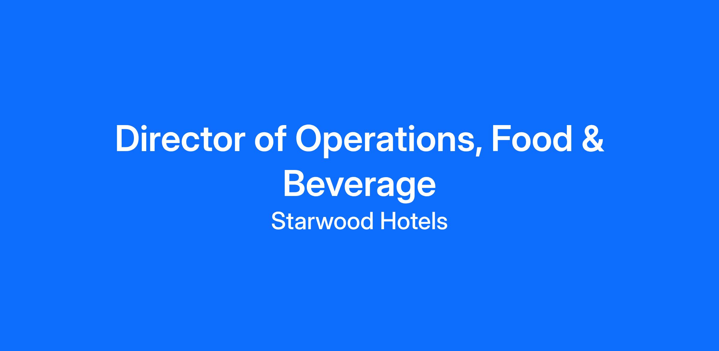 · 5 years experience as Director of Food & Beverage, preferably in a 5 Star Hotel.