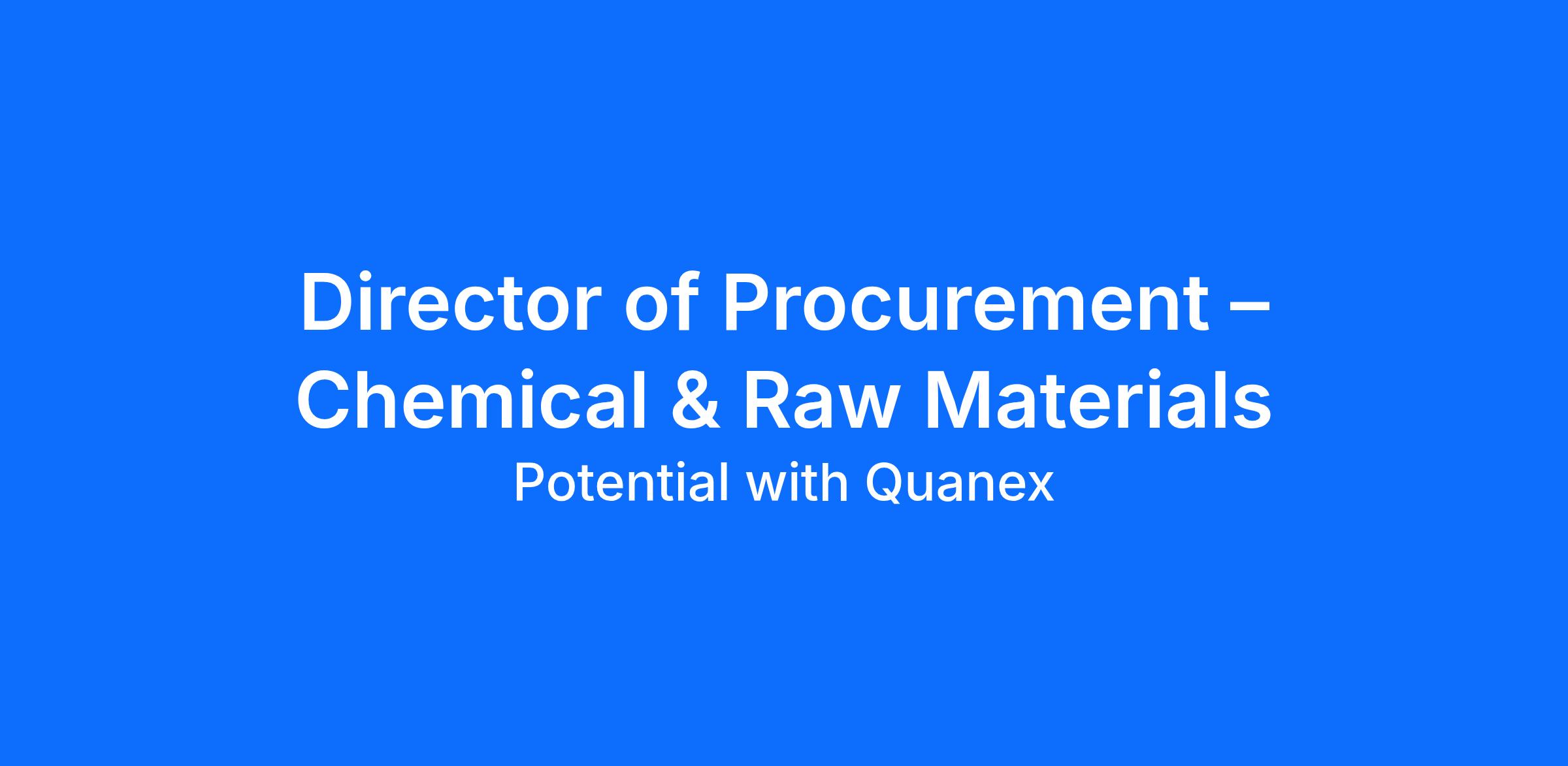 The Director of Procurement – Chemicals and Raw Materials is accountable for providing leadership and direction as it relates to a large procurement category assigned. Develops, recommends and implements procurement strategic sourcing strategies and continuous improvement initiatives to create a robust and resilient supply chain in alignment with the business growth and profitability goals.