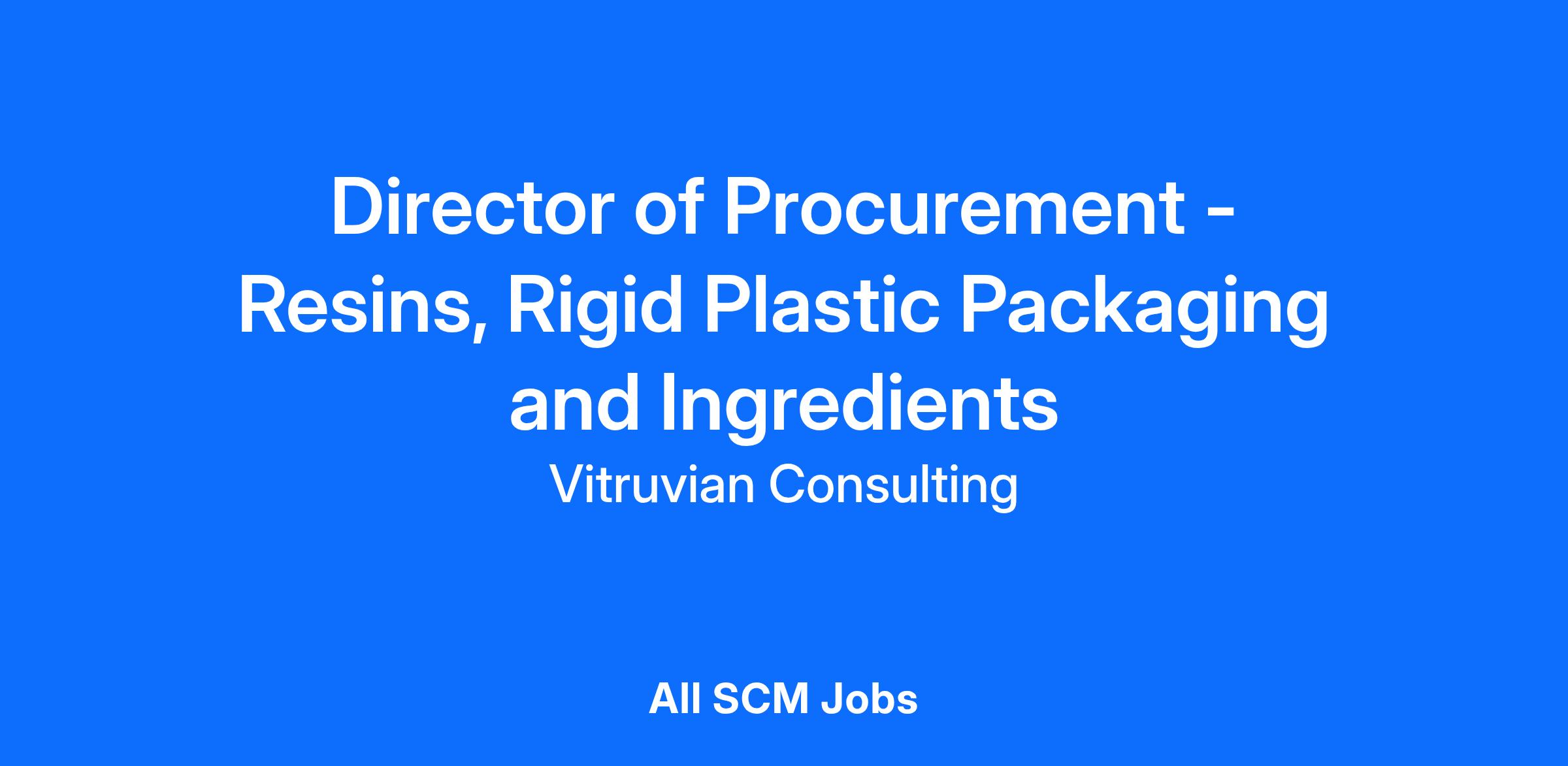We are currently seeking a Director, Procurement, Resins, Rigid Plastic Packaging and Ingredients, for a highly visible, strategic role reporting directly to the VP of Procurement!