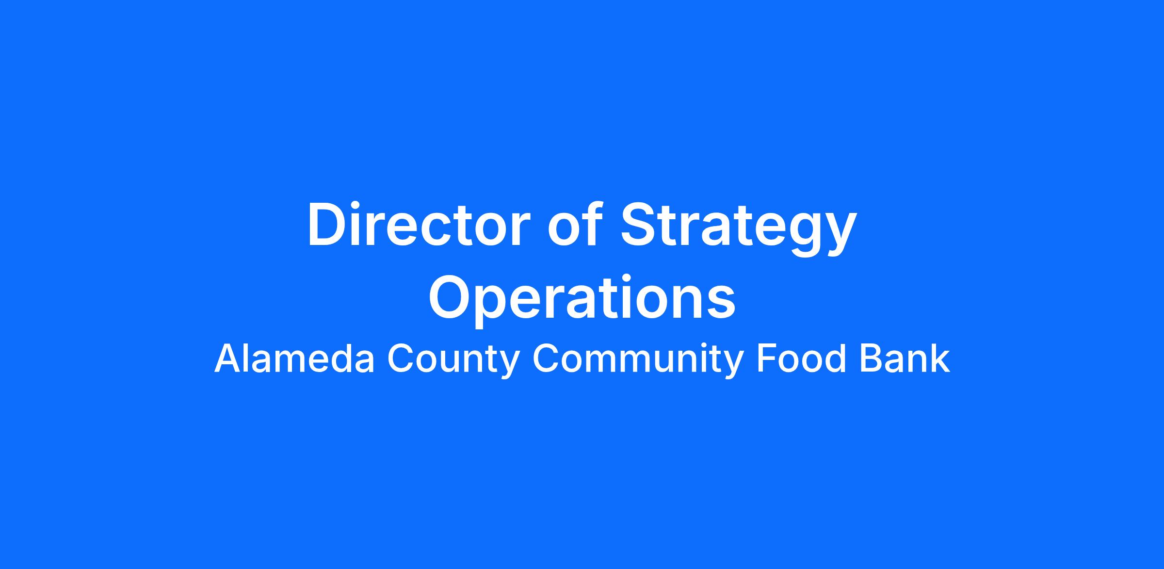 - Are you an experienced Director that’s interested in Strategy Operations of the Alameda County Community Food Bank?