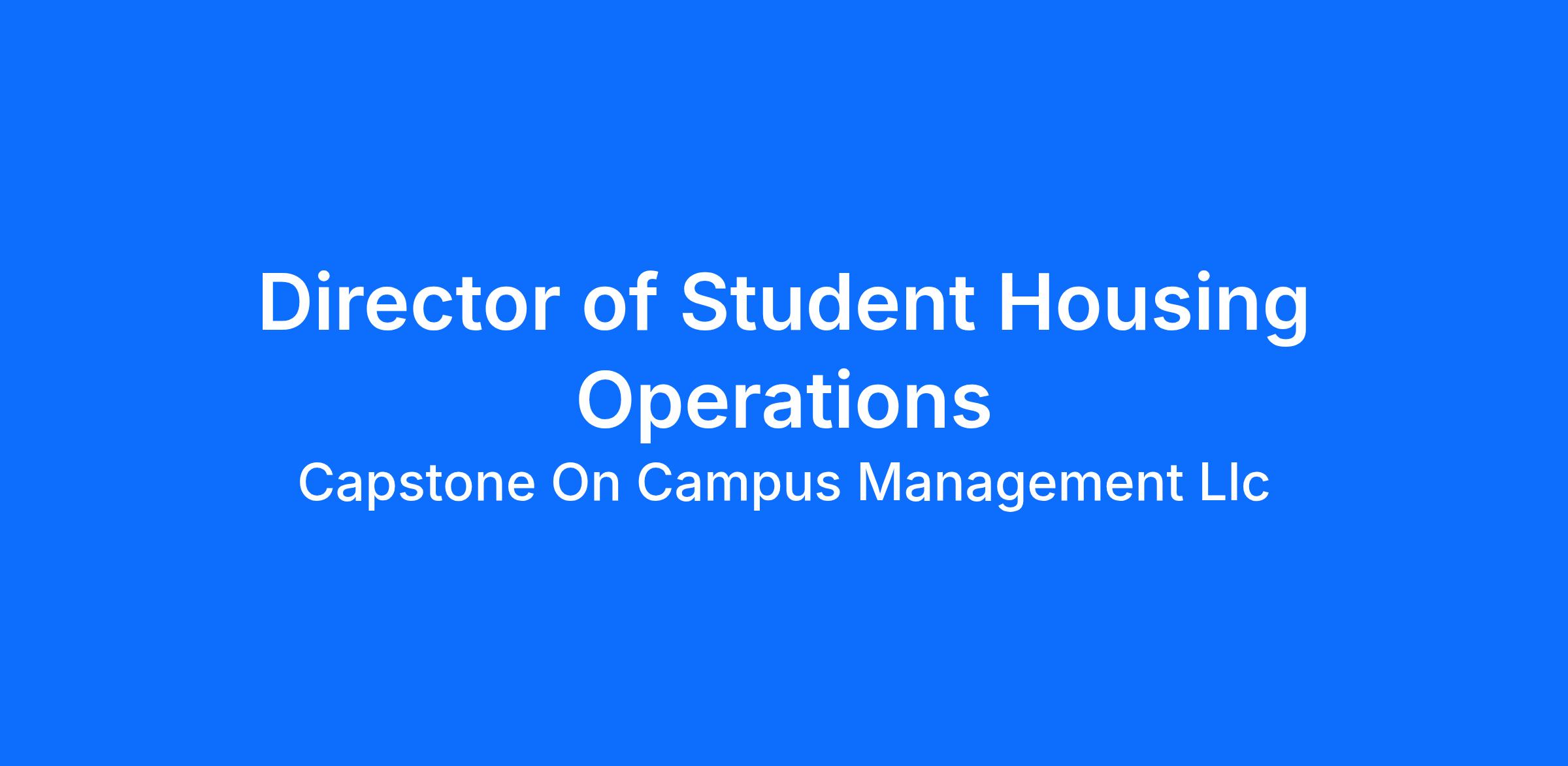 This position requires a strong combination of managerial, organizational, and interpersonal skills. The Director must work collaboratively with ownership, campus partners, and internal teams to ensure a high-quality residential experience and the successful execution of operational goals.