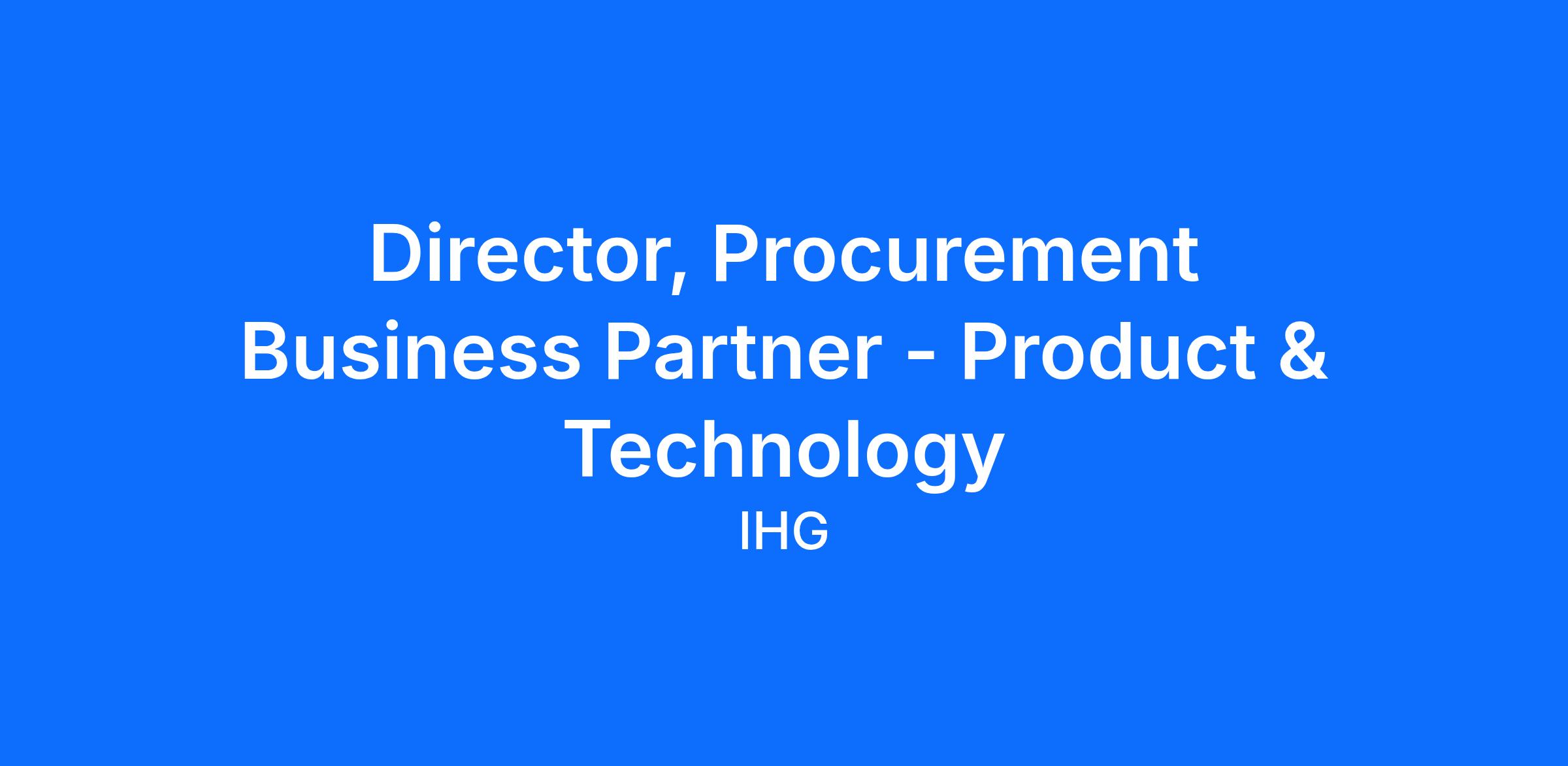 We are seeking a strategic and results-driven Director of Procurement Business Partner– Products & Technology (“P&T”) to join our Corporate Procurement team. This role will be primarily focused on business partnering with multiple senior executives from our Products & Technology business unit. This position is a new role created within procurement in support of the IHG procurement strategy. In this pivotal role, you will lead procurement initiatives that align with our organizational goals, driving value and innovation through effective stakeholder management and collaboration. You will work closely with cross-functional teams to co-create strategic initiatives bringing third party market expertise to the equation. You will demonstrate excellent people leadership by overseeing the execution to ensure it is done faster, smarter and create more value.