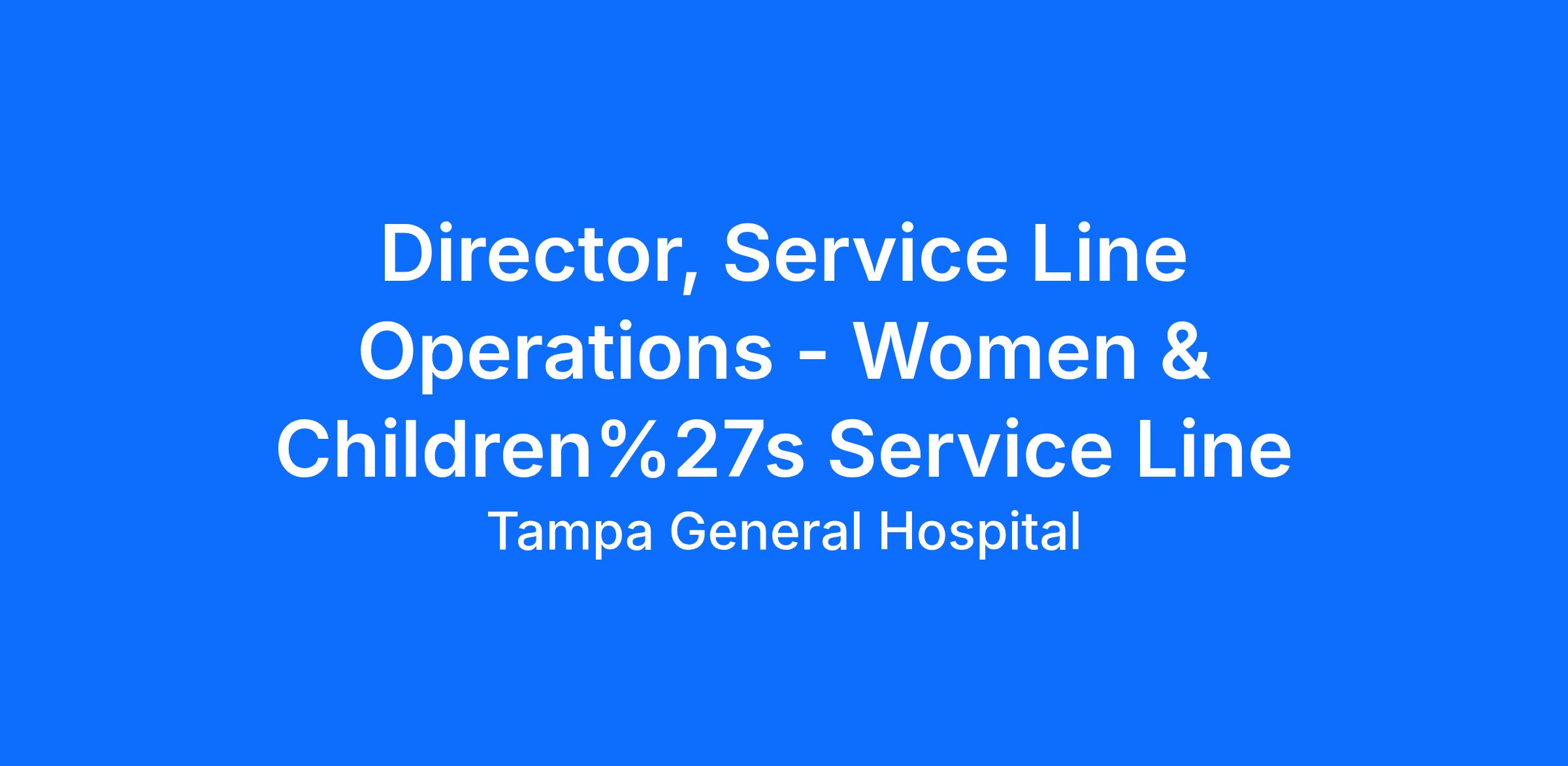 The Director of Service Line Operations is responsible for overseeing operational functions as applicable to the Service Line across the FHSC system. The Director of Service Line Operations requires expertise in the execution of service line operations across multiple care settings and care delivery environments across an integrated delivery system. The role is responsible for overseeing the operational objectives for the Service Line, the execution of outlined goals, and ongoing tracking performance reporting. Responsible for collaborating across the organization to ensure that Service Line performance is aligned with organizational action plan (OAP) and operationalizes change management when necessary. Manages cross-functional projects through completion and supports the initiatives with data-driven insights. The position is responsible for performing job duties in accordance with mission, vision and values of Tampa General Hospital.
