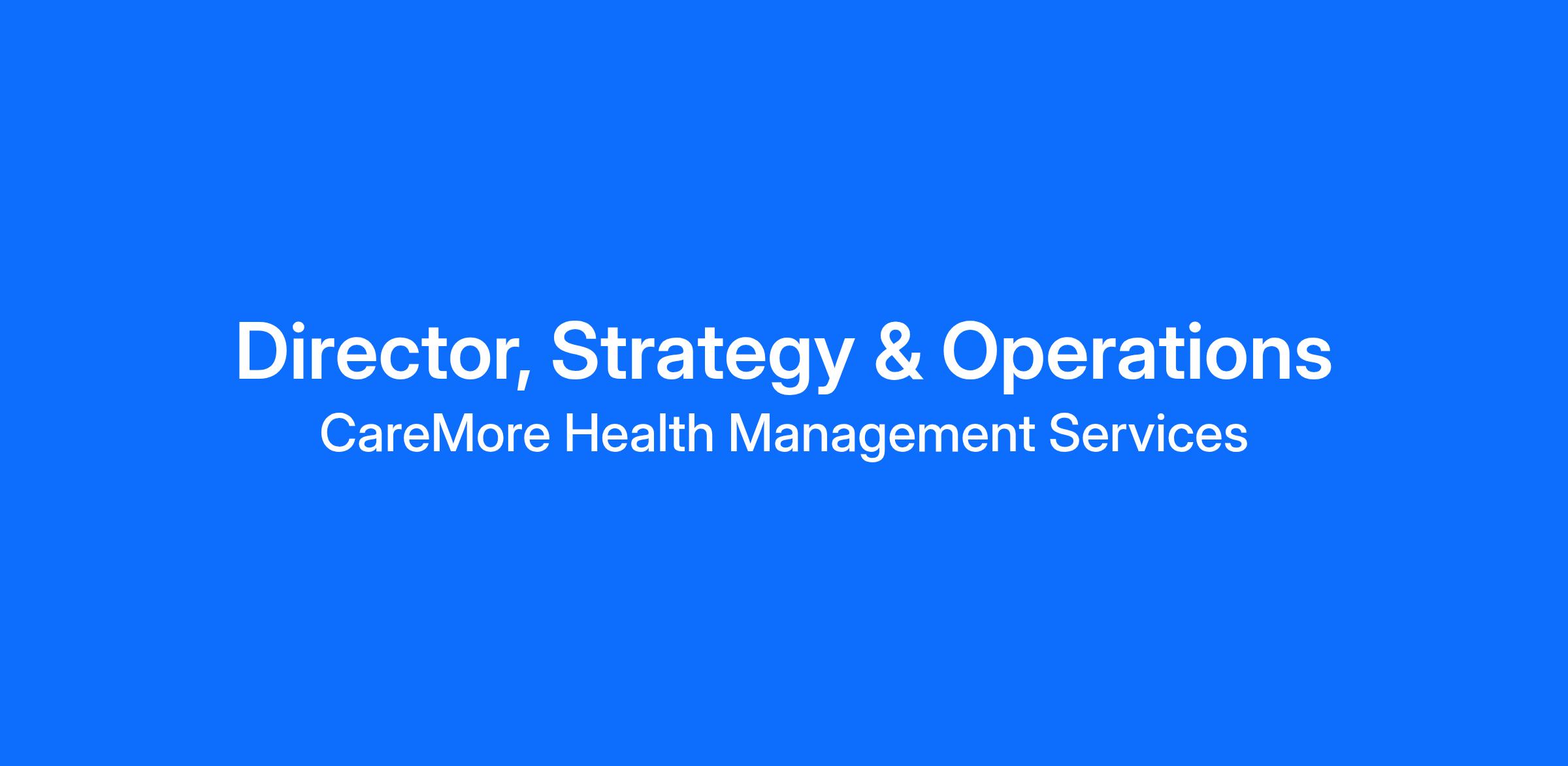 The Director, Strategy & Operations will be responsible for driving enterprise-wide strategic planning, operational excellence, and critical initiatives for CareMore Health. This leader will play a central role in aligning clinical, administrative, and shared services functions with business objectives, ensuring scalable growth and performance optimization across Medicare and Medicaid populations.