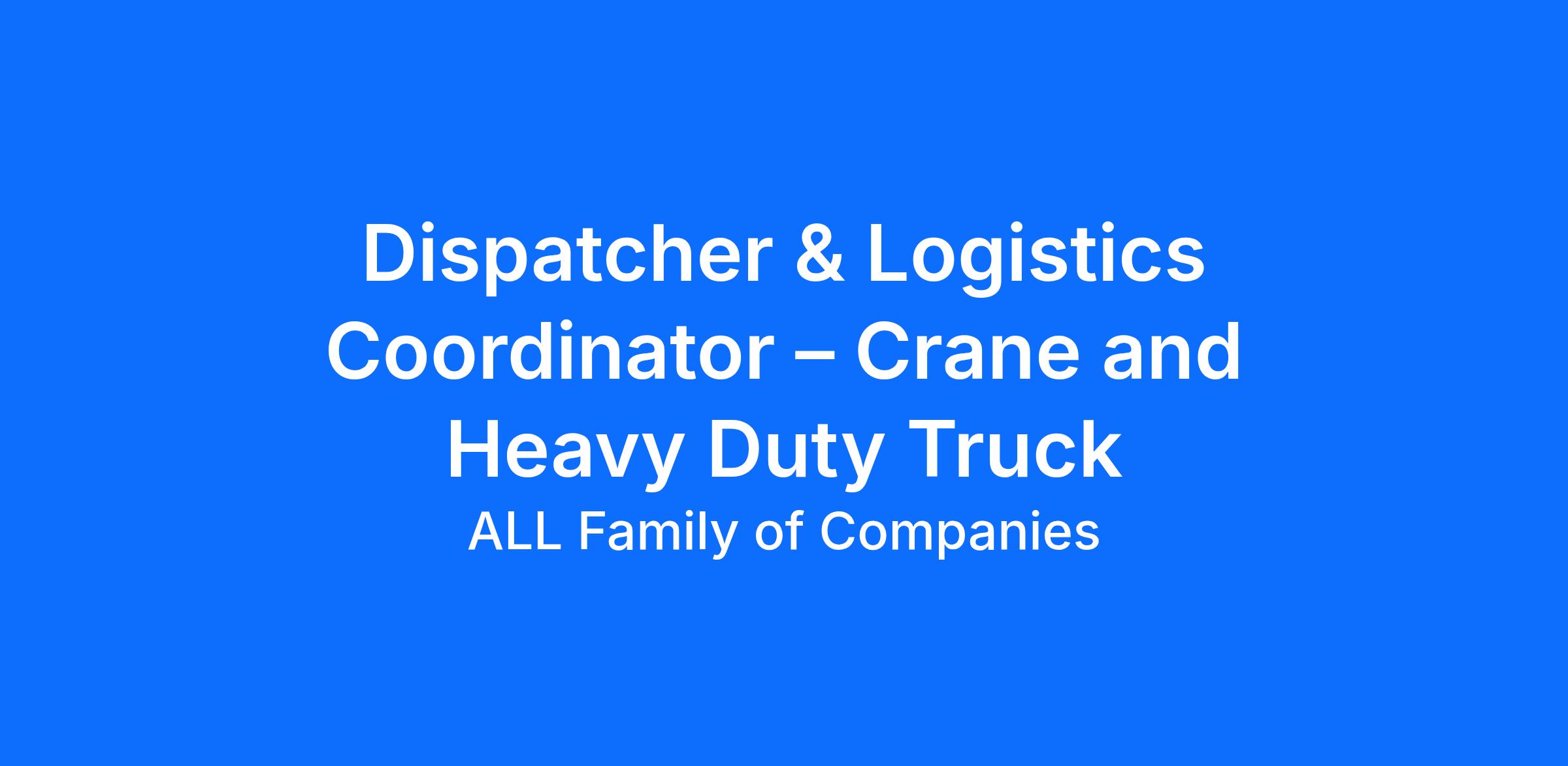 Dispatcher & Logistics Coordinator – Crane and Heavy Duty Truck