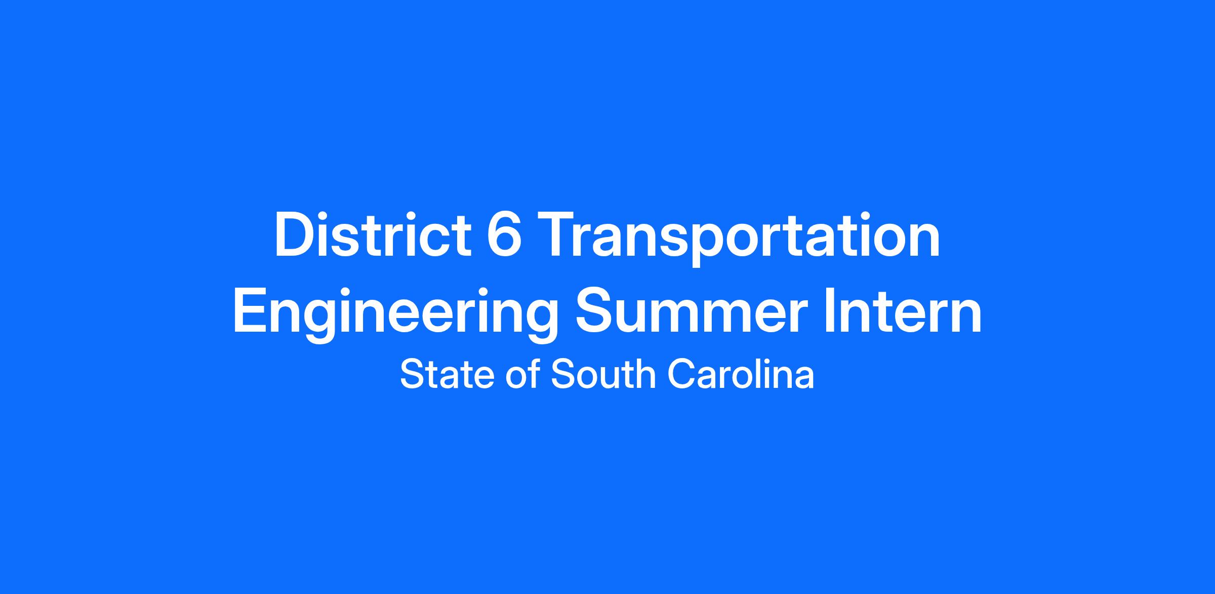 This posting will be used to fill multiple summer internship positions in the Department of Transportation District Six offices located in Beaufort, Berkeley, Charleston, Colleton, Dorchester, and Jasper. Assists in engineering activities in the Maintenance and/or Construction Engineering fields. The responsibilities include: