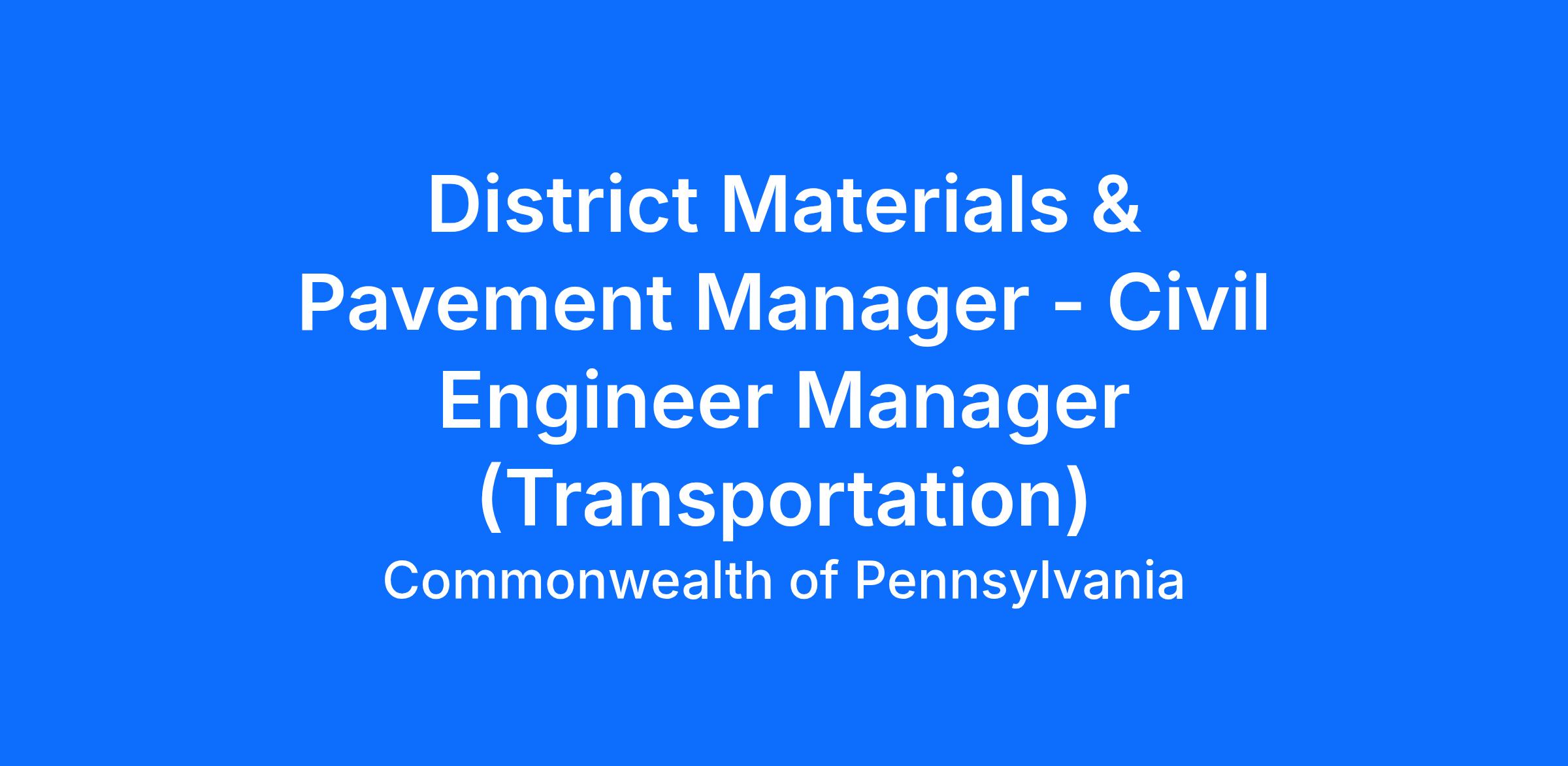 The Pennsylvania Department of Transportation, District 8, seeks a skilled and dedicated District Materials & Pavement Manager to join our dynamic team. In this essential role, you will offer expert technical guidance and support for highways and bridges across our construction, design, and maintenance divisions. This position presents an exceptional opportunity for professional advancement within a collaborative and innovative environment, allowing you to leverage your expertise to make informed decisions and drive successful project outcomes.
