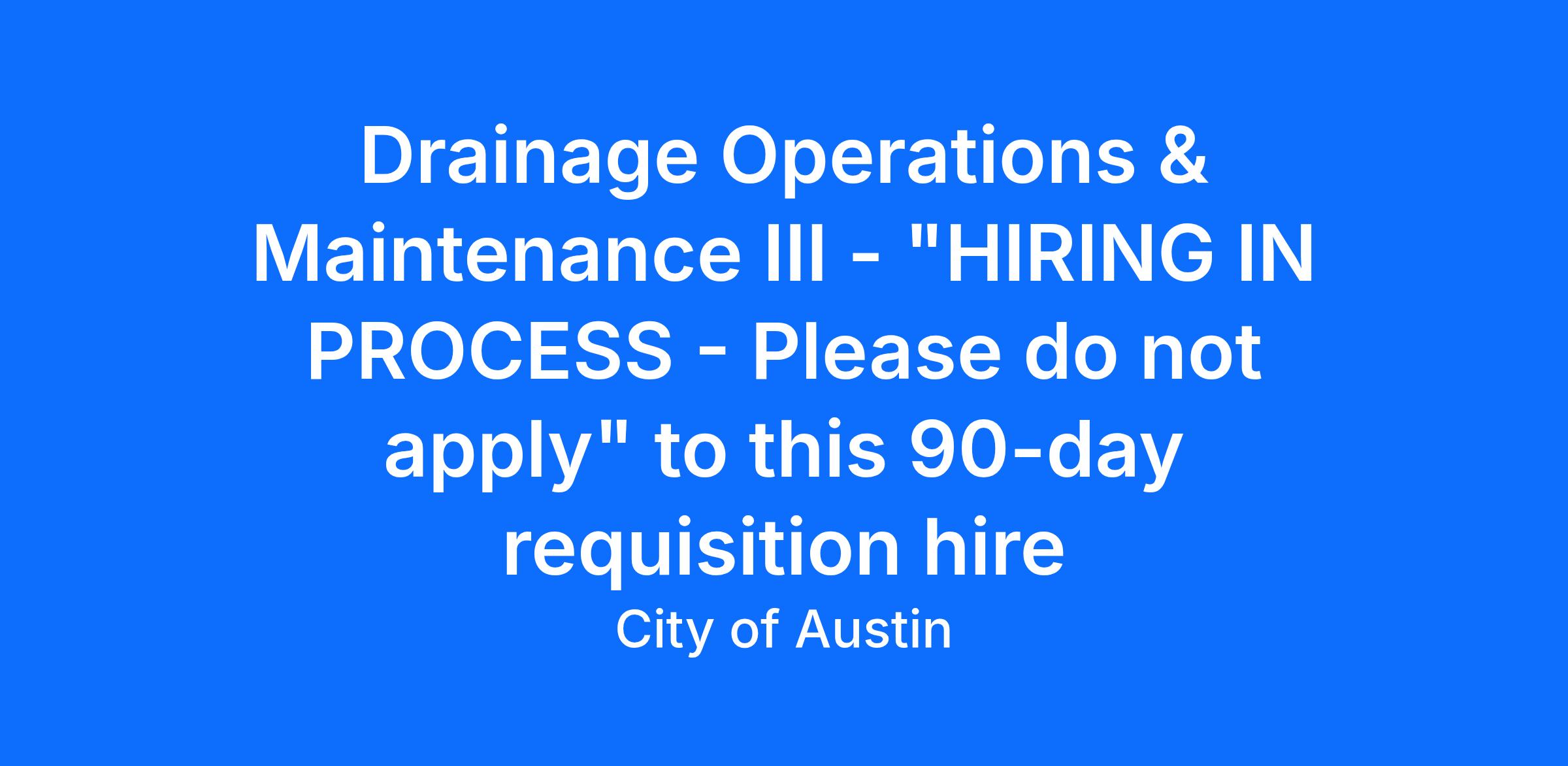 Drainage Operations and Maintenance III (HIRING IN PROCESS - Please do not apply). 90-day provision hire