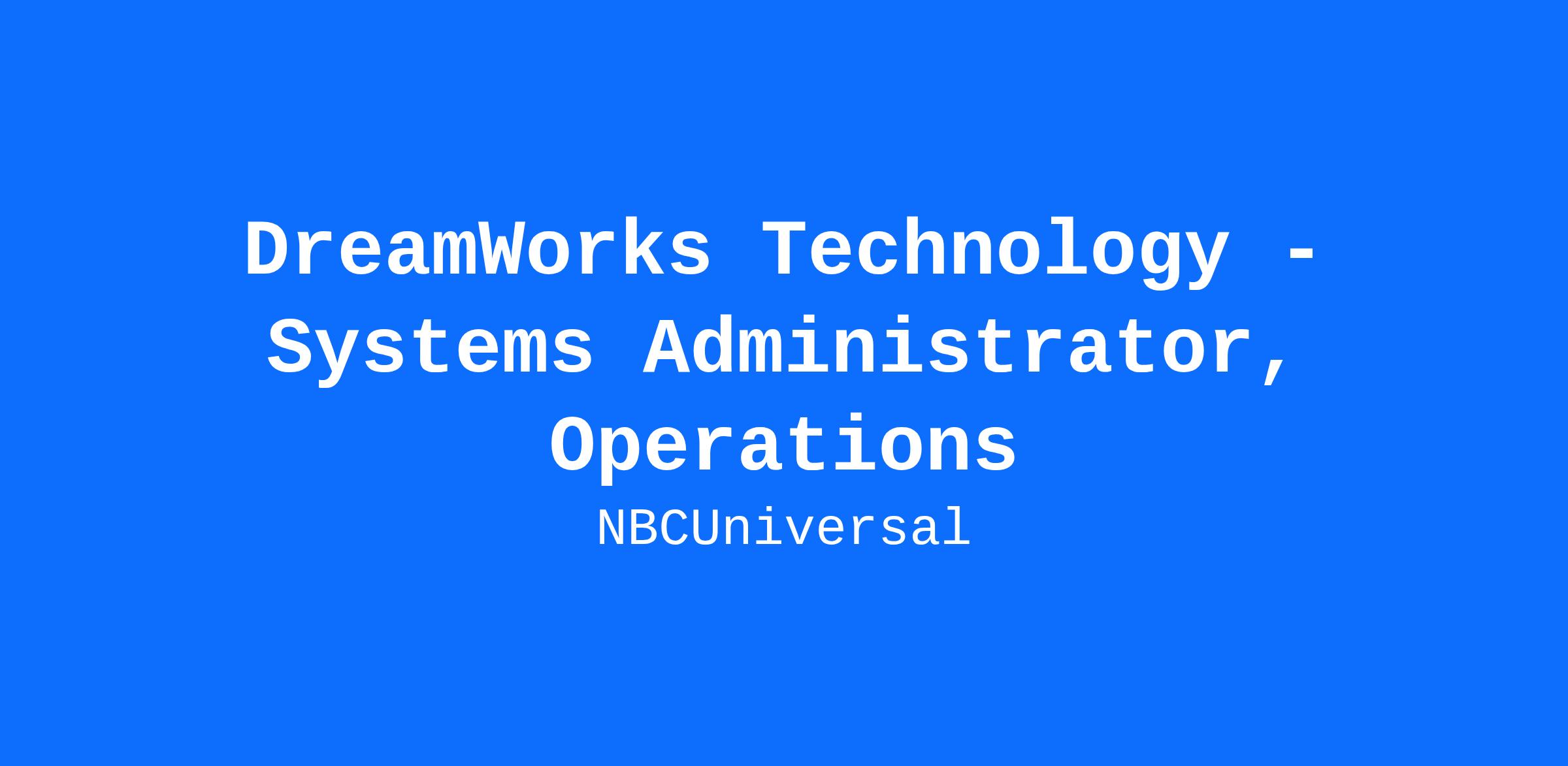 Required On-Site: This position is required to be performed full-time from the DreamWorks designated worksite.