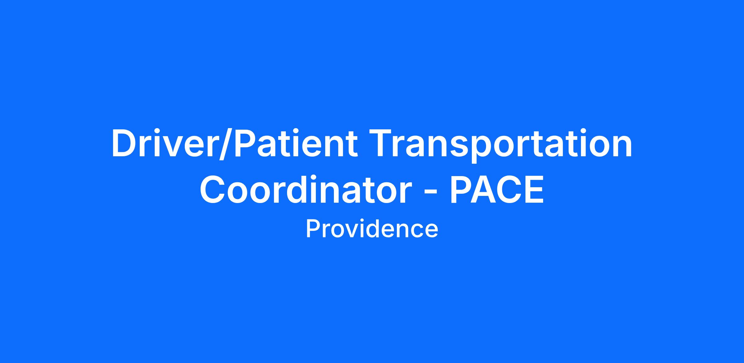 The Transportation Coordinator picks up and delivers geriatric, frail and/or physically limited PACE participants to and from their destinations in regular or specially equipped vehicles, depending upon the individual geriatric participants needs.