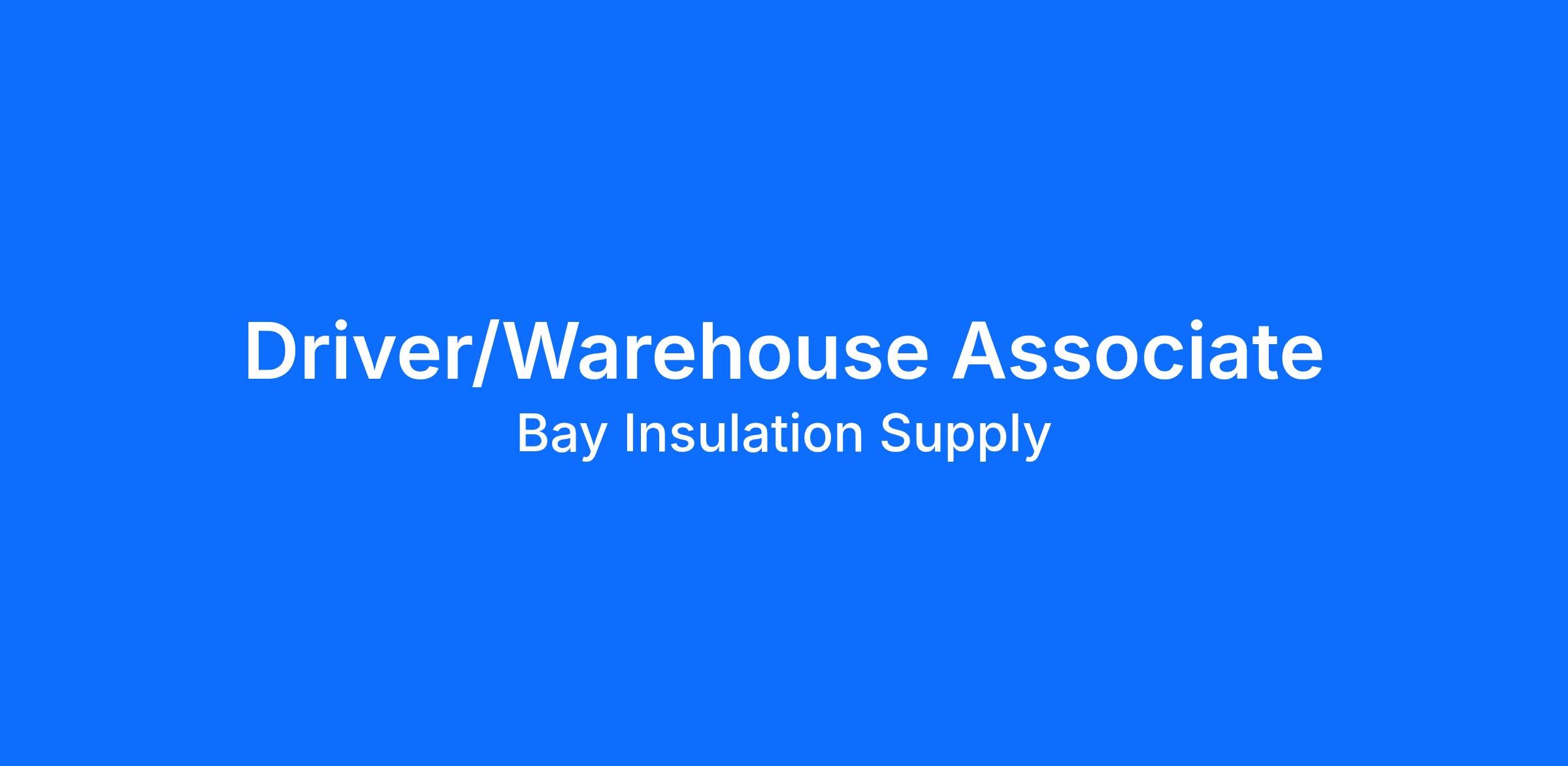 Bay Insulation of Ohio in Columbus is actively looking for a Warehouse Associate/Delivery Driver who will share responsibility for all warehouse and delivery functions of a small warehouse and work in tandem with another Warehouse Associate/Delivery Driver.