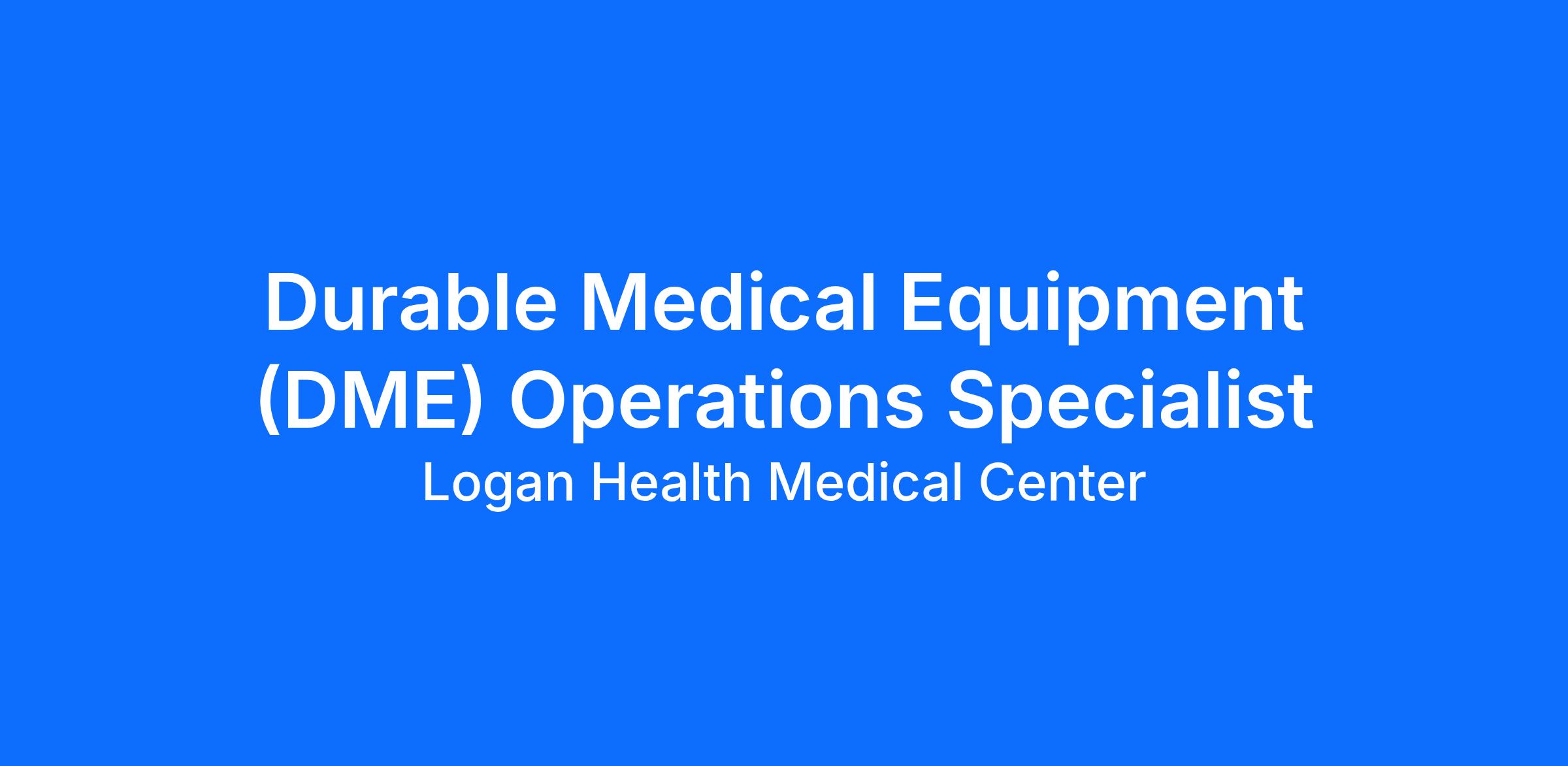 This position is the primary resource for durable medical equipment (DME) compliance, billing rules and regulations for Logan Health Medical Equipment (LHME).