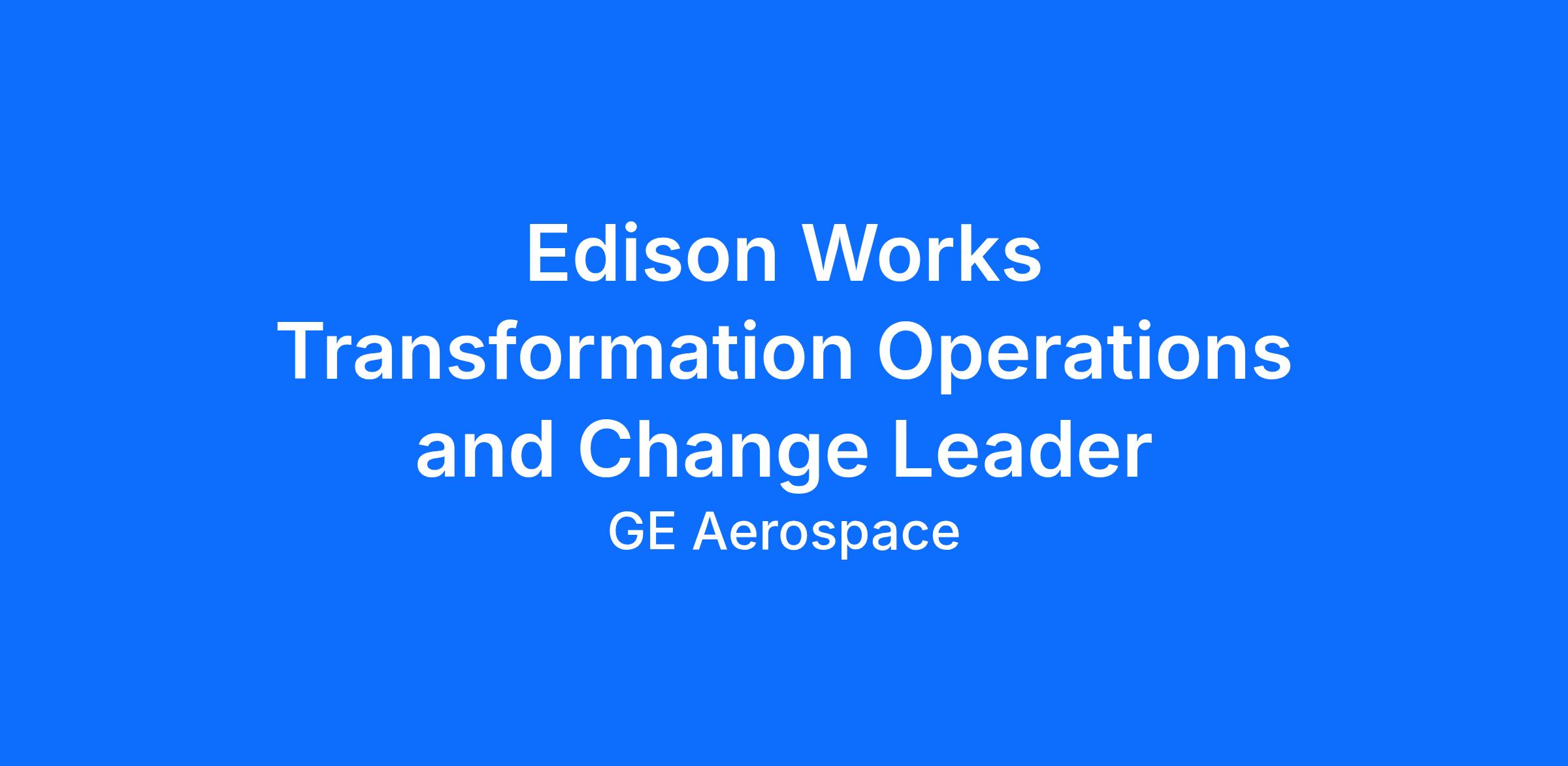 - Organize Governance structures and standard work in support of Edison Works transformation objectives.