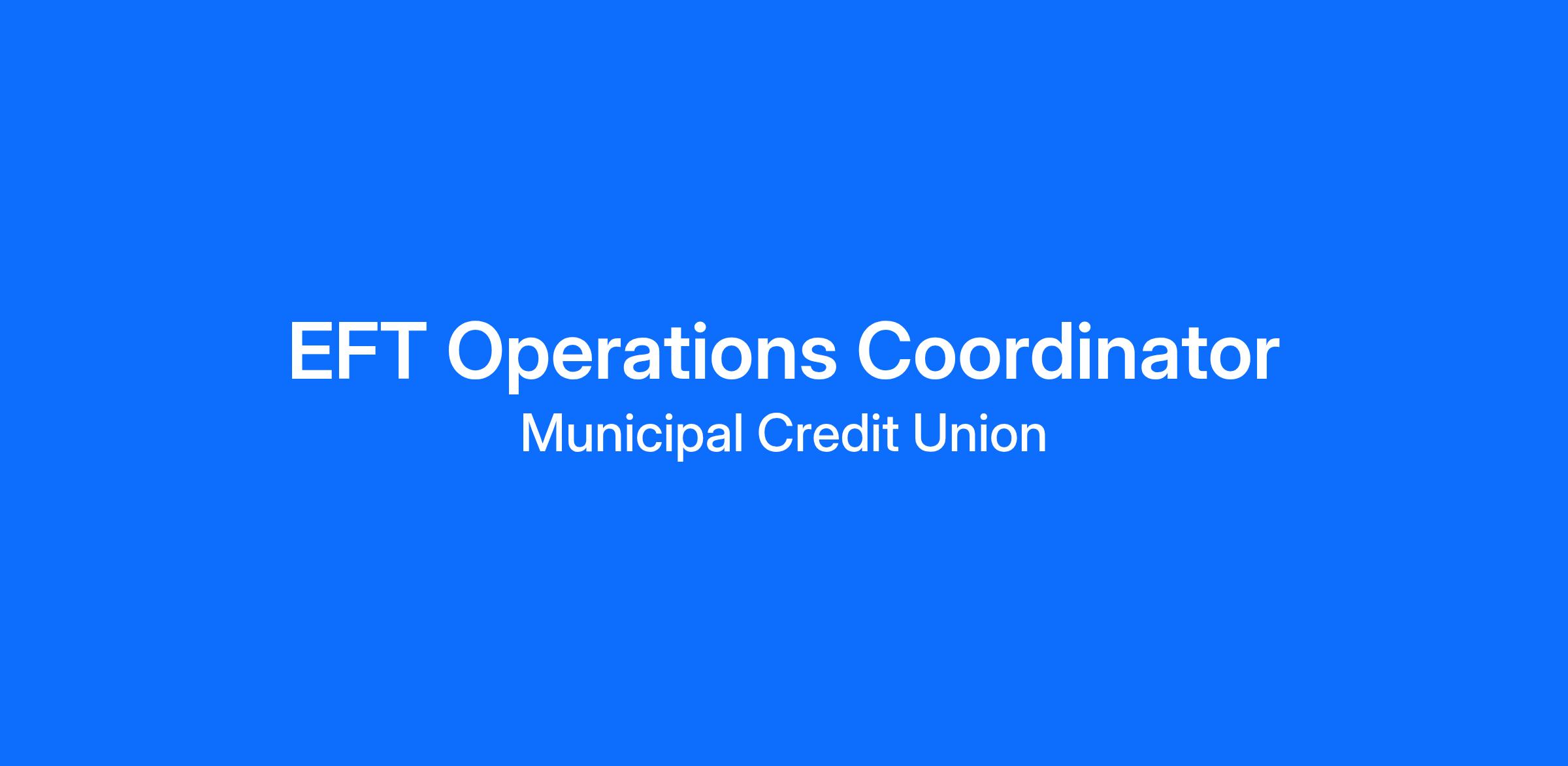 Overview: The EFT Operations Coordinator is responsible for coordinating professional and administrative support to the EFT Operations Leadership Team with responsibilities for daily, weekly, and monthly reporting and analysis, and process improvement initiatives. Responsible for reviewing and updating any processes, procedures, and guidelines as needed. The EFT Operations Coordinator is responsible for managing member wires and ensuring adherence to regulatory standards.