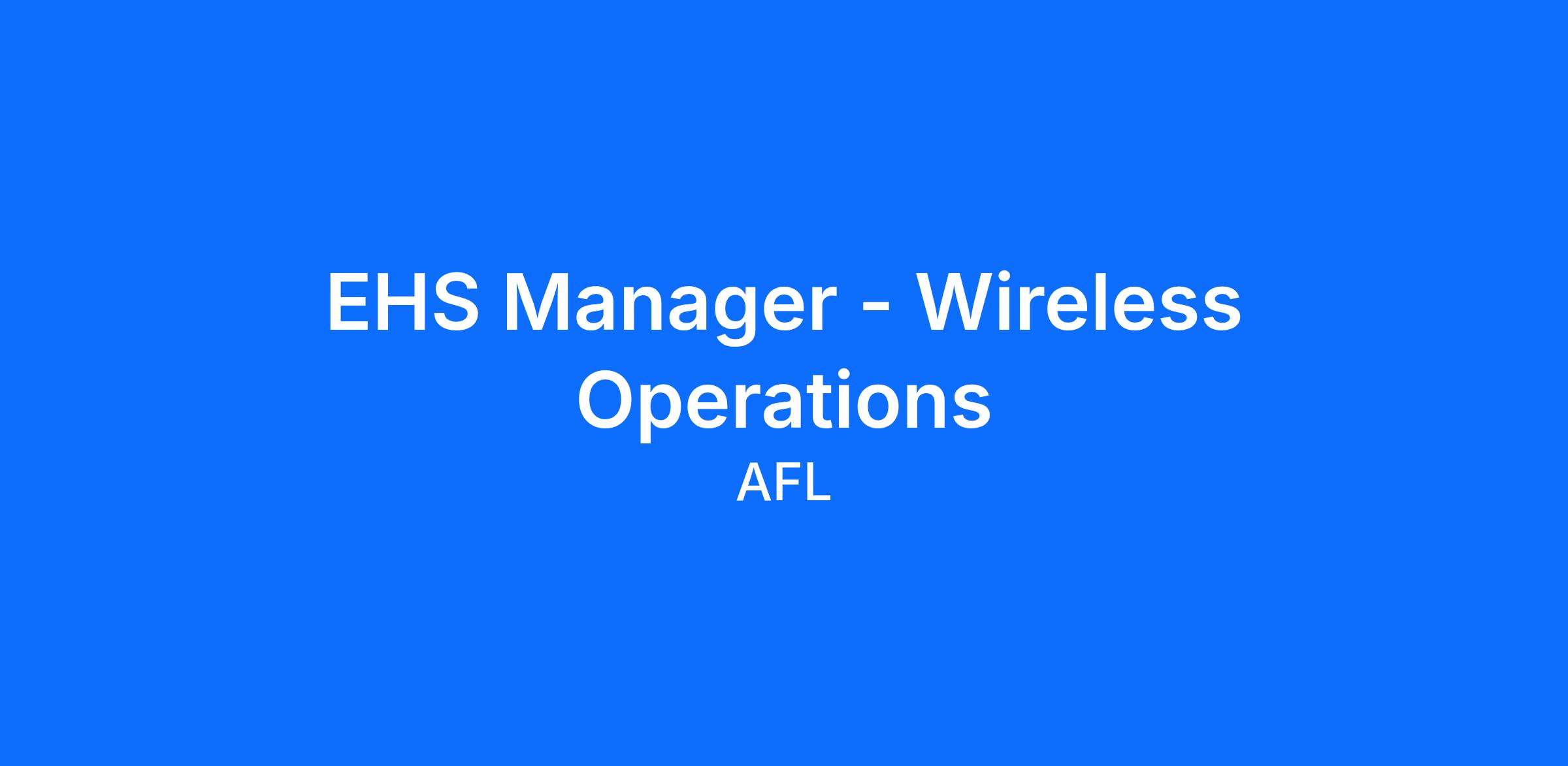The EHSS Manager – Wireless Operations is responsible for leading environment, health, safety, and security (EHSS) performance across AFL Wireless construction activities and select field operational support. This role protects people while enabling predictable project execution, schedule certainty, and customer confidence in highârisk, fastâpaced environments.
