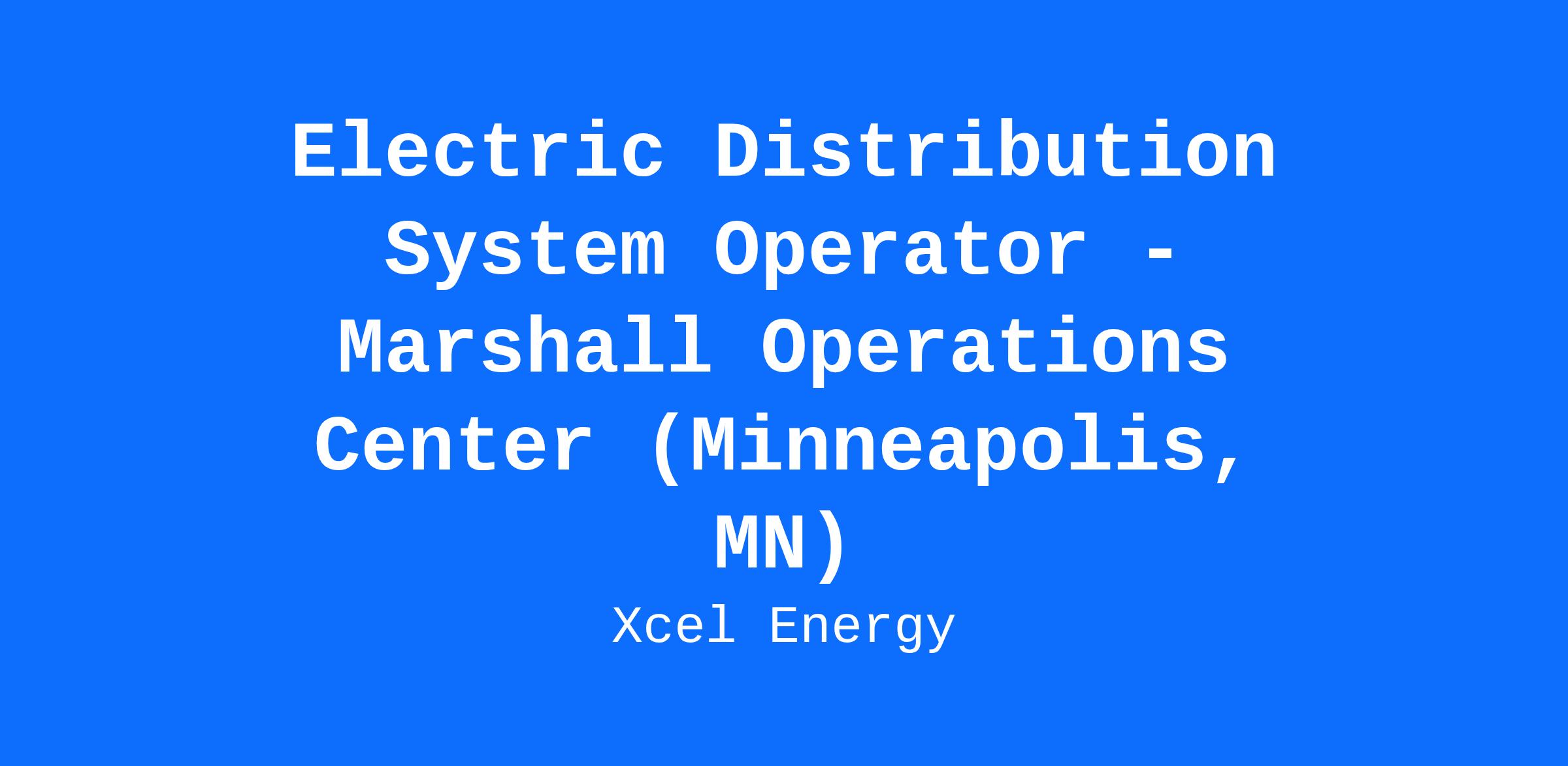 This entry-level position is responsible for real-time monitoring and the safe, reliable operation of Xcel Energy’s Electric Distribution System in SD, ND, and MN. Working alongside the SR DSO and completing all training checkoffs, the DSO will learn all aspects of the requirements for successfully operating the Distribution System. The DSO has authority to perform necessary actions to maintain the electric distribution system, including executing switch plans within its jurisdiction.