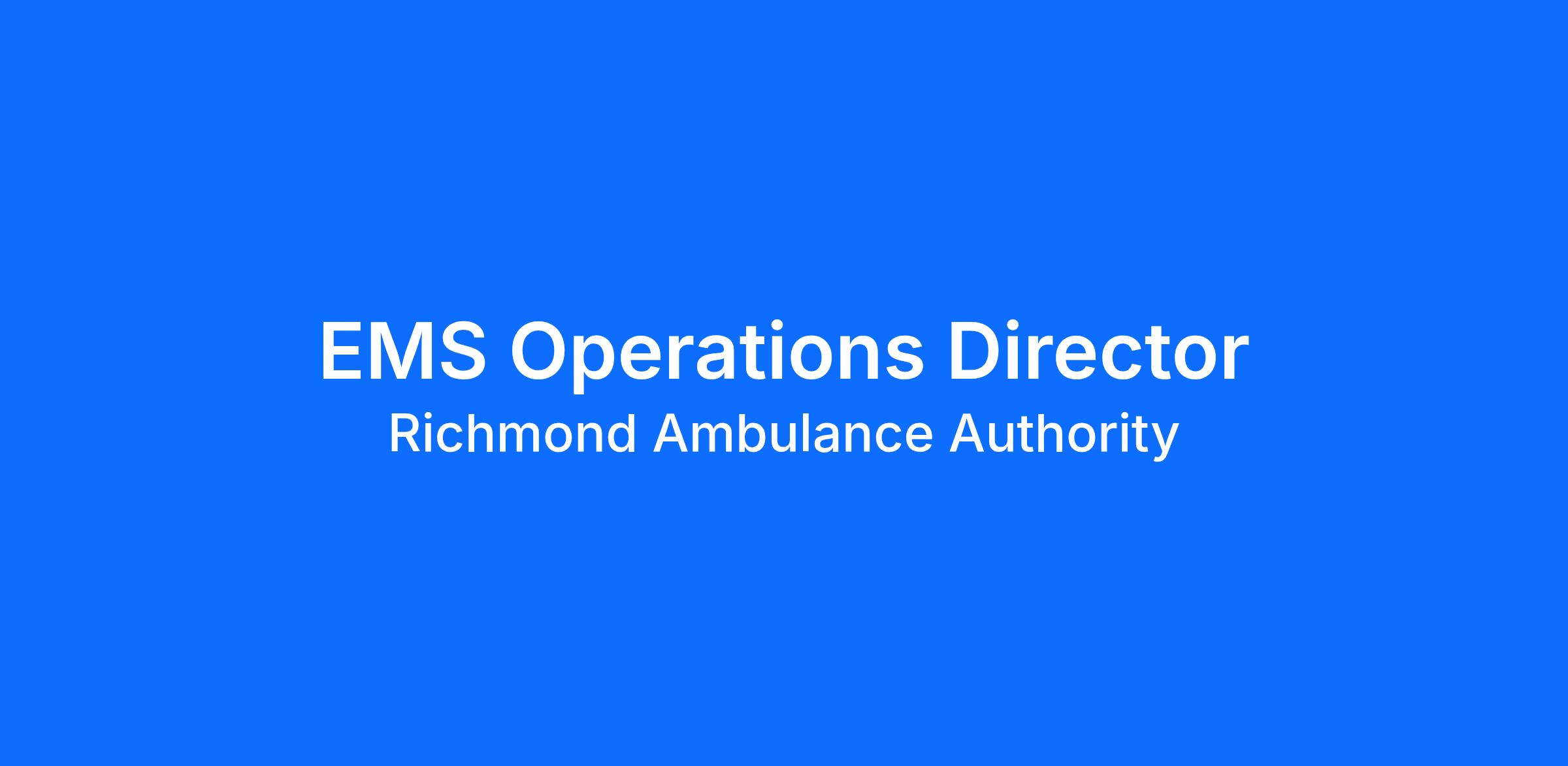 The EMS Operations Director is the senior operational leader responsible for ensuring the effective and efficient delivery of emergency medical services at the Richmond Ambulance Authority. This position provides executive oversight of all frontline operational functions, including Field Operations, the Communications Center, and Emergency Management. It reports to the Deputy Chief Operating Officer and ensures consistent service delivery, clinical performance, system reliability, regulatory compliance, and alignment with agency standards and strategic priorities. This position also acts as a conduit between tactical operations and executive leadership, ensuring operational output directly supports organizational performance, safety, and mission readiness.