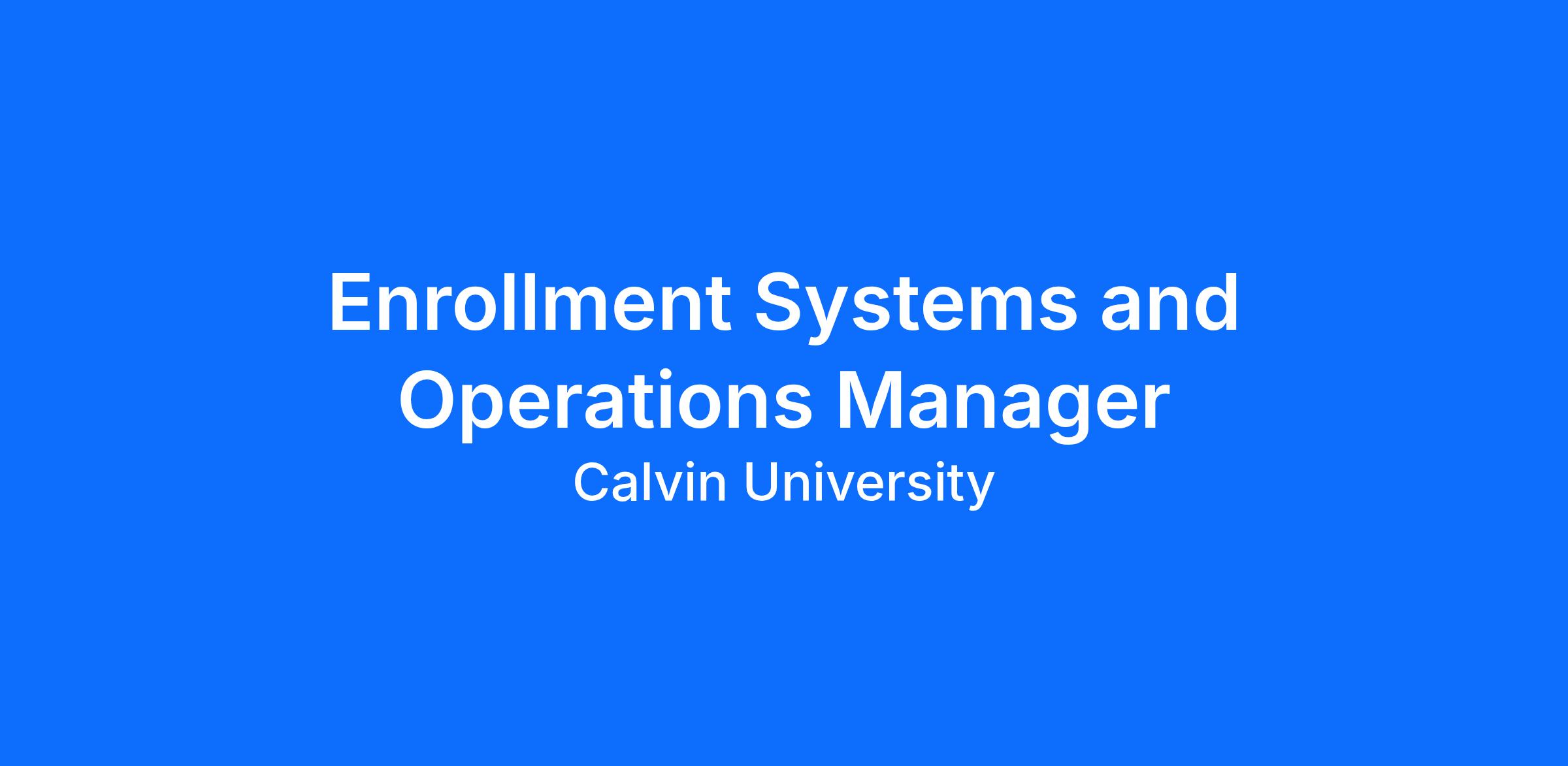 Calvin University is seeking a highly skilled and experienced Enrollment Systems and Operations Manager to join our admission operations team. This critical role is responsible for managing and optimizing our institutional instance of Slate CRM and other enrollment systems to support and meet both undergraduate, graduate, and continuing studies enrollment goals. This position will serve as the deputy of all matters related to the enrollment CRM, Technolutions Slate, and related technology.