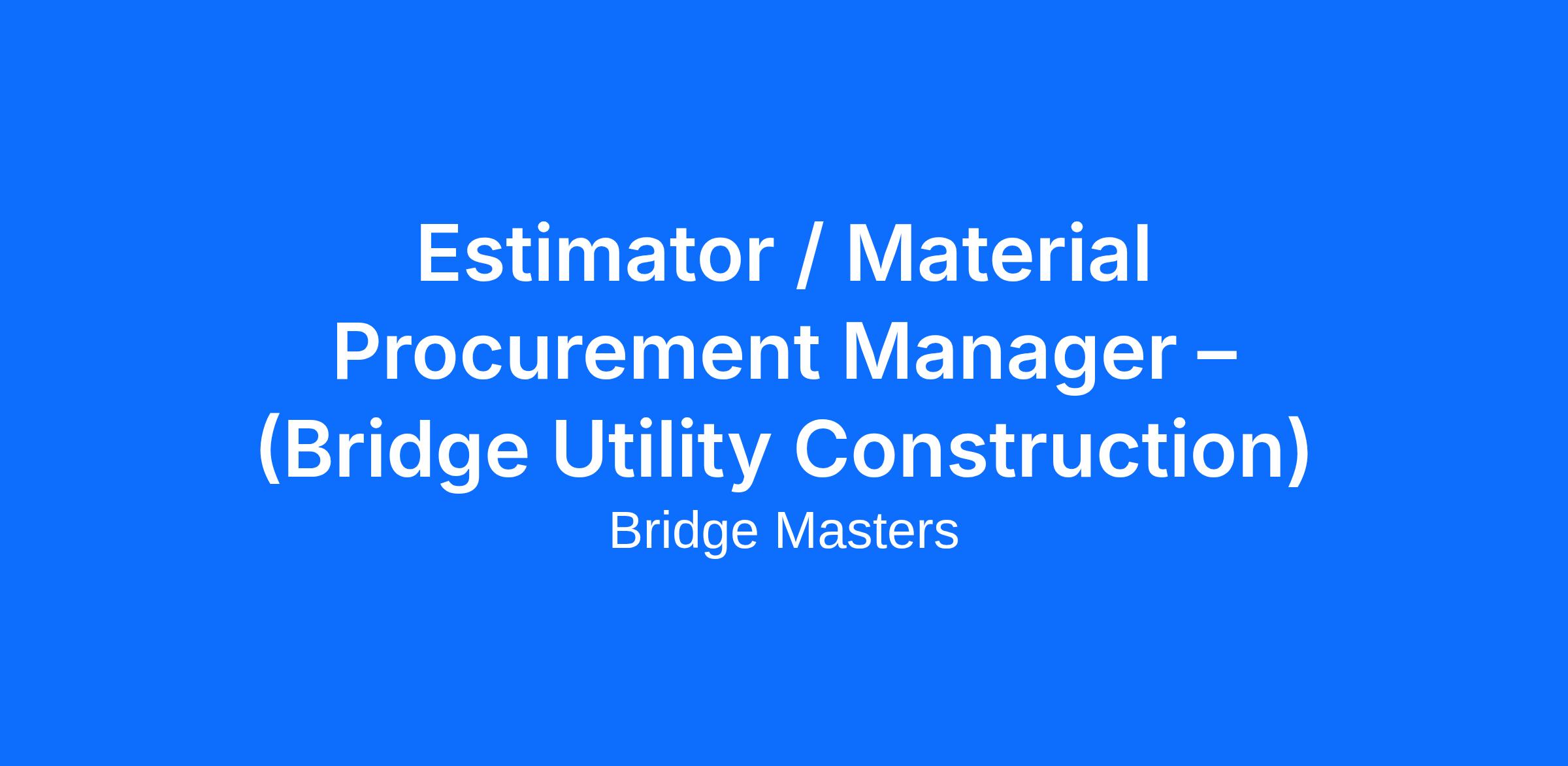 This is a balanced estimating and procurement role designed for a detail-driven construction professional with strong analytical, organizational, and communication skills. The Estimator / Procurement Specialist will develop cost estimates, manage vendor relationships, and coordinate material deliveries to support multiple active bridge projects.