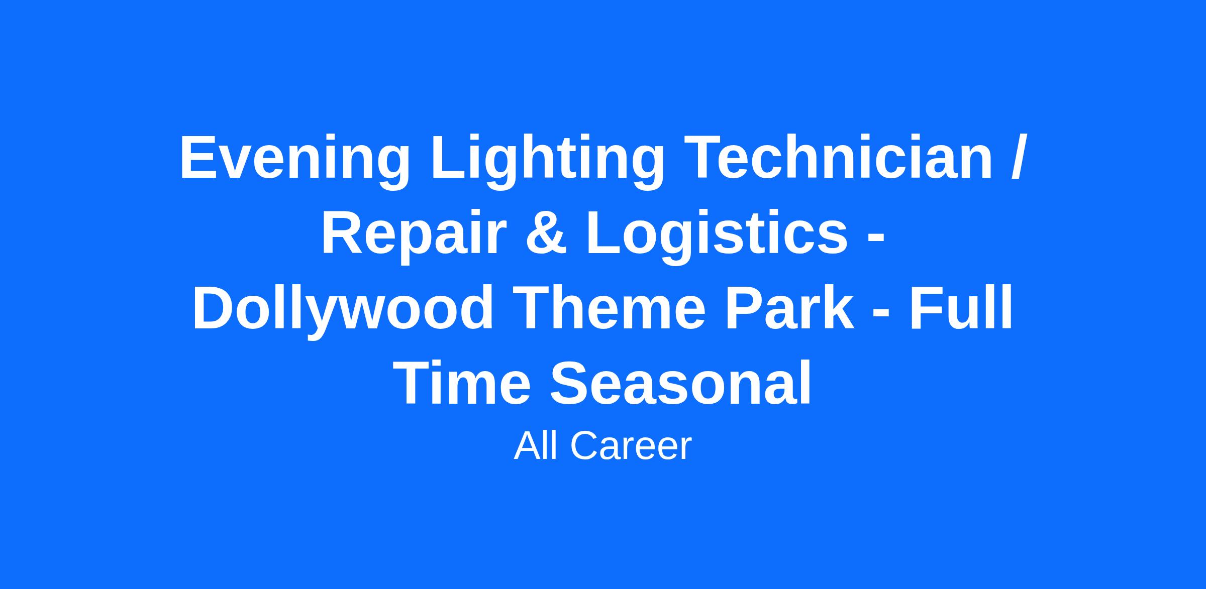 At Dollywood Parks & Resorts, we create memories worth repeating. We do this every day across all properties, all located in the Great Smoky Mountains of East Tennessee. Ask anyone who has visited Dollywood Parks & Resorts and they will tell you this place is different. It’s not a difference that you can touch or see - it’s a difference you can feel. We are seeking an Evening Lighting Technician / Repair & Logistics who will embody the heart and soul of our mission of creating memories worth repeating while bringing families closer together and caring deeply about our brand.