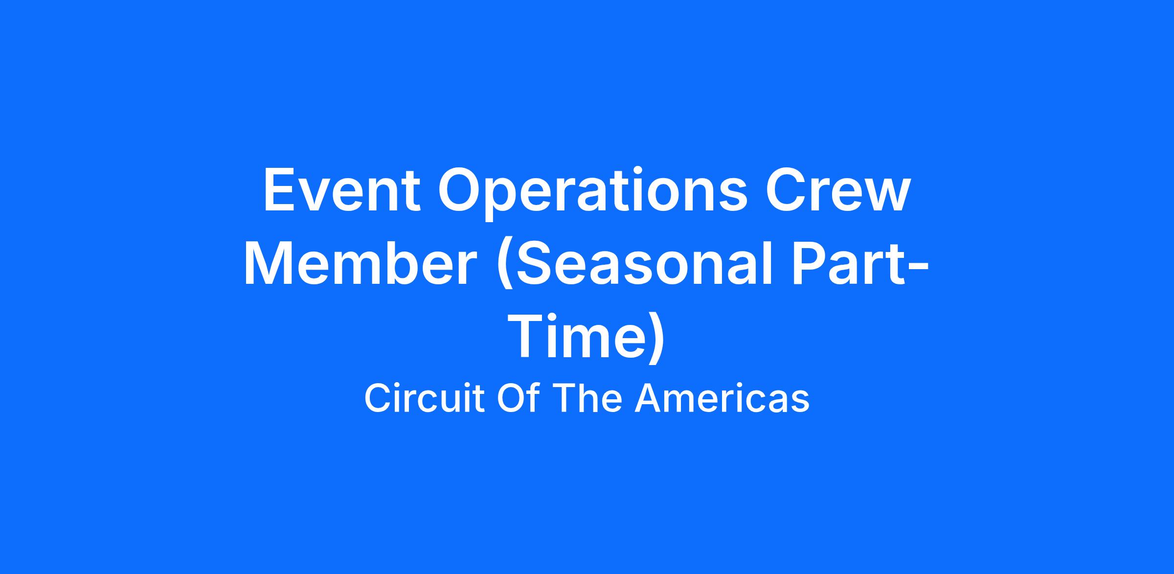 Event Operations Crew Member (Seasonal Part-Time)Circuit of The Americas (COTA) is a 365-entertainment destination for world-class events located in Austin, TX. The sports and entertainment portfolio at COTA is unmatched in the country with Formula 1 US Grand Prix, NASCAR and MotoGP attracting global fans during championship races on the famed Circuit and Live Nation producing over 30 headline concerts every year at the Germania Insurance Amphitheater. Opening in 2025, COTA’s amusement park is a 20-acre theme park featuring two first of their kind Roller Coasters and over three dozen rides.