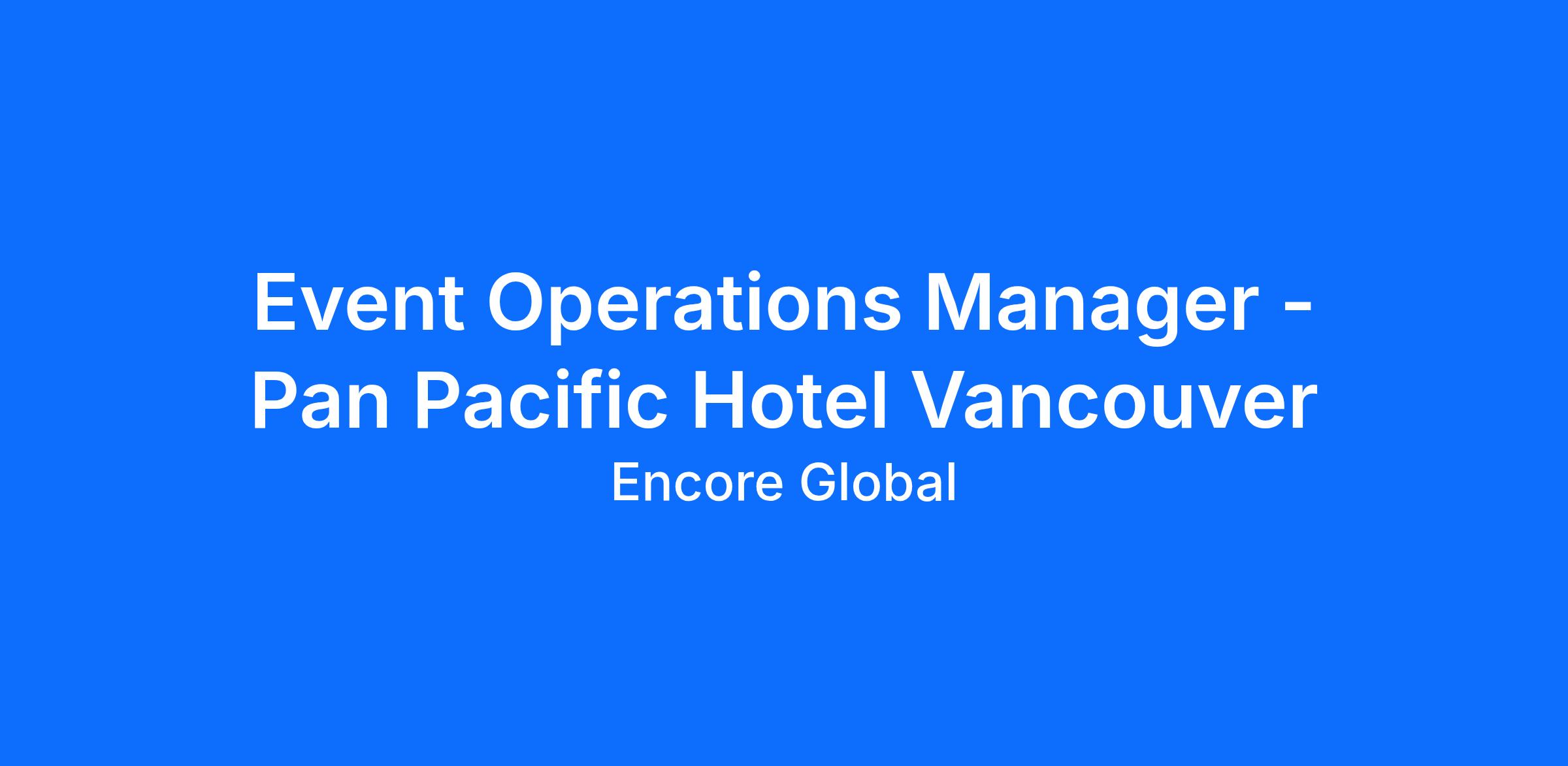 Event Operations Manager -Pan Pacific Hotel Vancouver