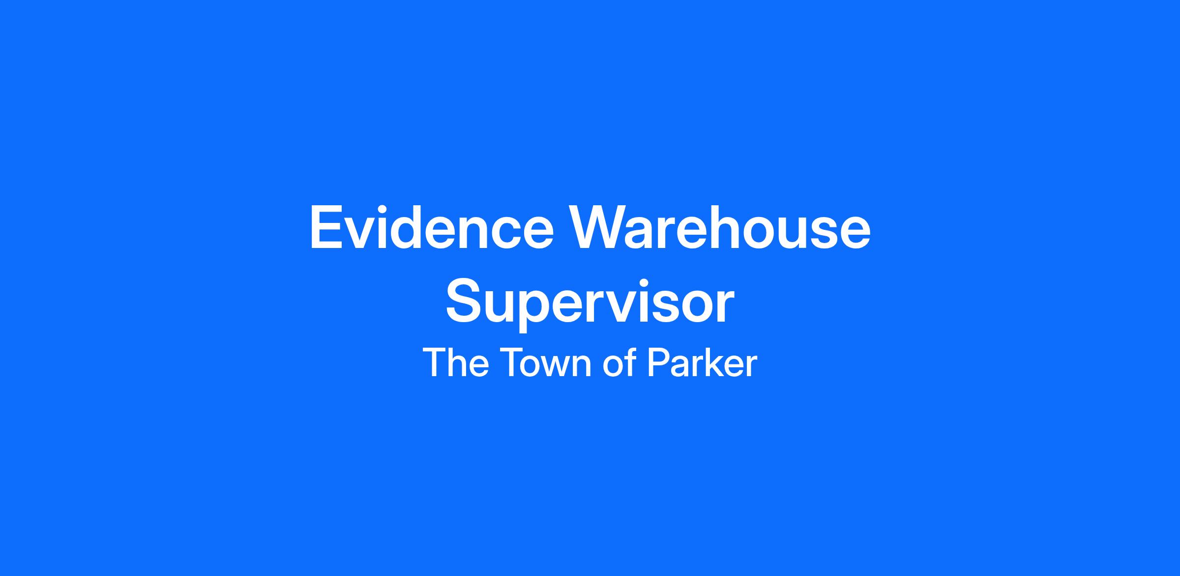 The mission of the Parker Police Department's Evidence Section is to ensure the safety and preservation of property and evidence through organized, professional, and efficient handling and storage. This includes careful management of all items entrusted to our care. The Property and Evidence Section services both the Parker and Lone Tree Police Departments. Come join this incredible team as our brand new to us Evidence Warehouse Supervisor. This position will supervise one full time and one part time Property and Evidence Technician.*This position performs duties deemed to be safety sensitive. Employees holding this position participate in pre-employment and random drug testing under Town’s policies*.