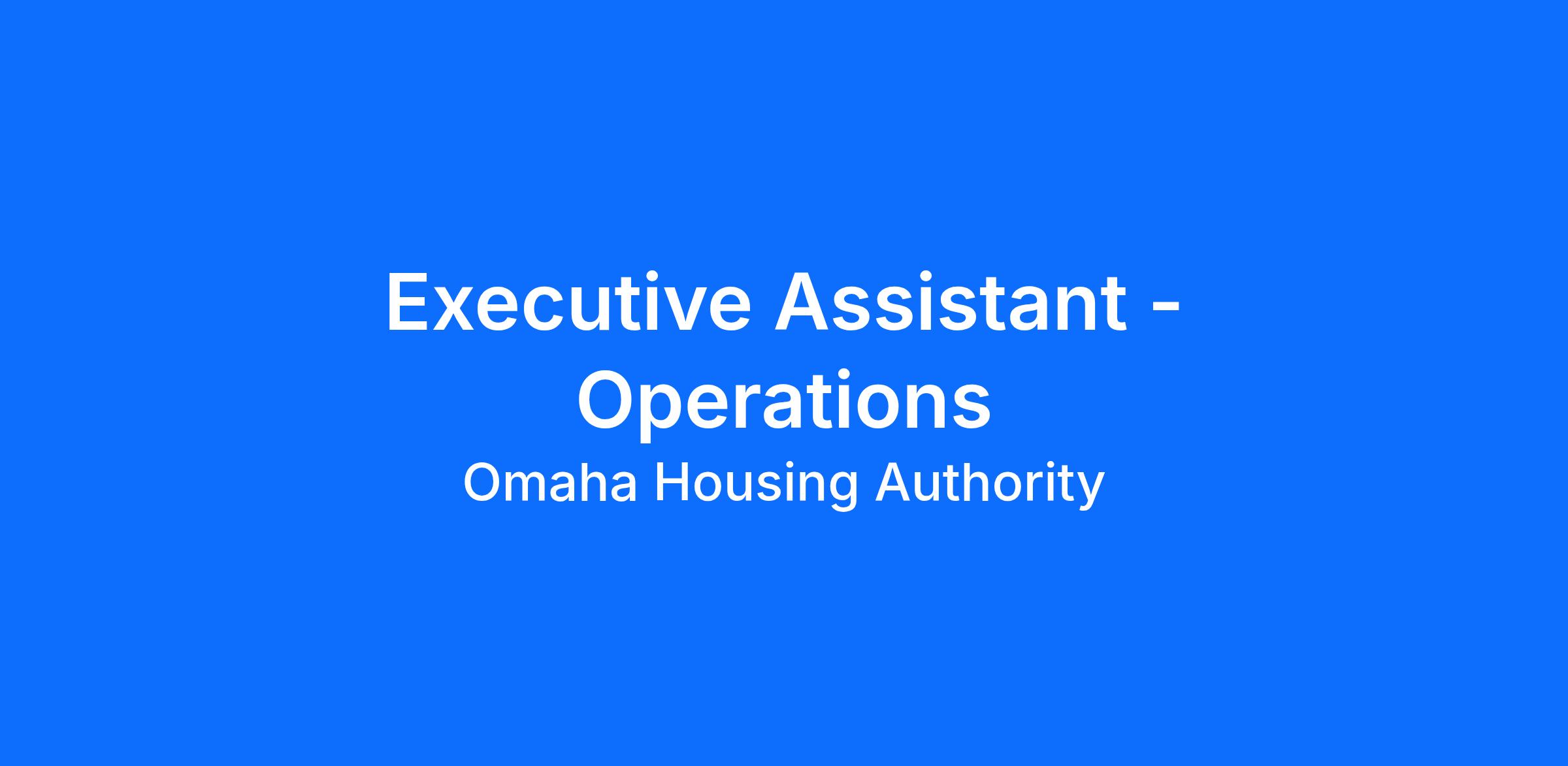 Are you passionate about making a real difference in the community? Do you thrive in a collaborative and supportive environment? The Omaha Housing Authority (OHA) is looking for a dynamic Executive Assistant - Operations to help us fulfill our mission of providing safe and affordable housing.