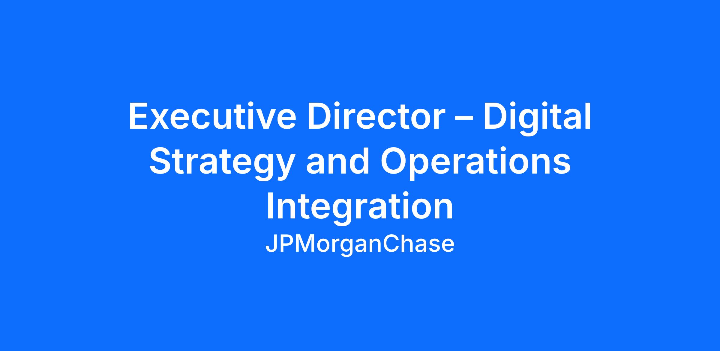 DescriptionJoin JPMorgan Chase as an Executive Director – Digital Strategy and Operations Integration, where you will champion transformative, mission-critical initiatives that shape the future of digital operations. Be a visionary leader driving dynamic innovation and strategic growth across all channels. Your expertise will empower teams to deliver seamless, future-focused customer journeys. Make a lasting impact by optimizing processes and elevating operational excellence. Advance your career in a role dedicated to pioneering digital transformation.