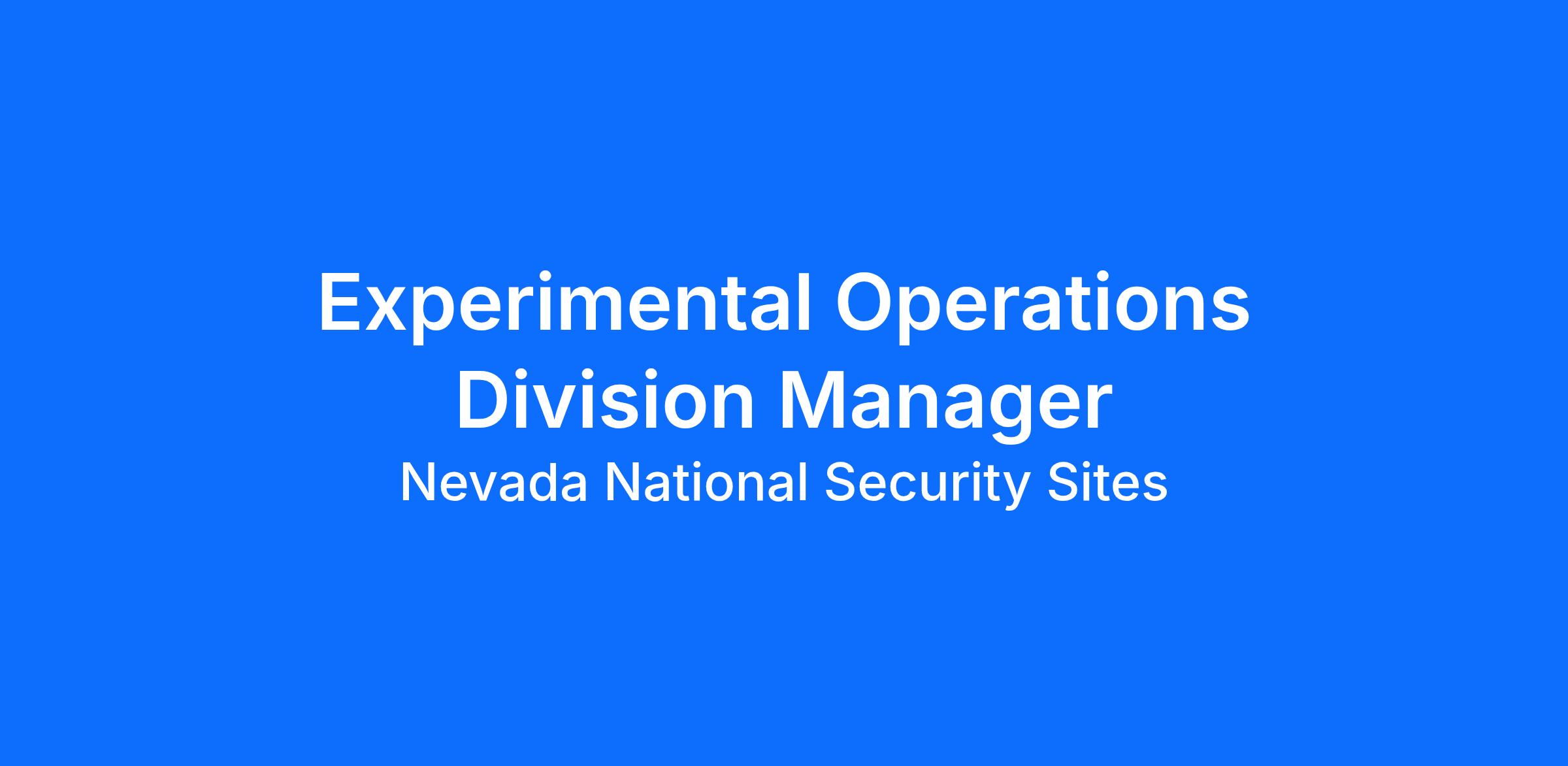 Do you want to be a part of a national security mission that conducts research and development? Mission Support and Test Services, LLC (MSTS) is seeking a full-time Experimental Operations Division Manager to work as part of a multidisciplinary team to provide diagnostic fielding and development support in a national laboratory environment. The Stockpile Experimentation & Operations (SEO) organization is looking for a highly motivated Manager I to collaborate in design, development, characterization, and fielding of diagnostics systems on high stake weapons physics experiments conducted at the Principal Underground Laboratory for Subcritical Experimentation (PULSE) Complex and other facilities located at the Nevada National Security Site (NNSS). This Experimental Operations Division Manager will report primarily to the Experimental Operations Functional Manager within the SEO – Technology & Operations (T&O) directorate. The SEO -T&O directorate is looking for a strong leader with managerial and diagnostic fielding experience to manage a team of technicians, scientists, and engineers who design, develop, characterize, and field diagnostic systems in support of the Stockpile Stewardship program. The selected candidate will report primarily to the NNSS as the Operations Manager within the SEO -T&O directorate to manage the JASPER and BEEF fielding teams in Area 27 and Area 04 respectively.