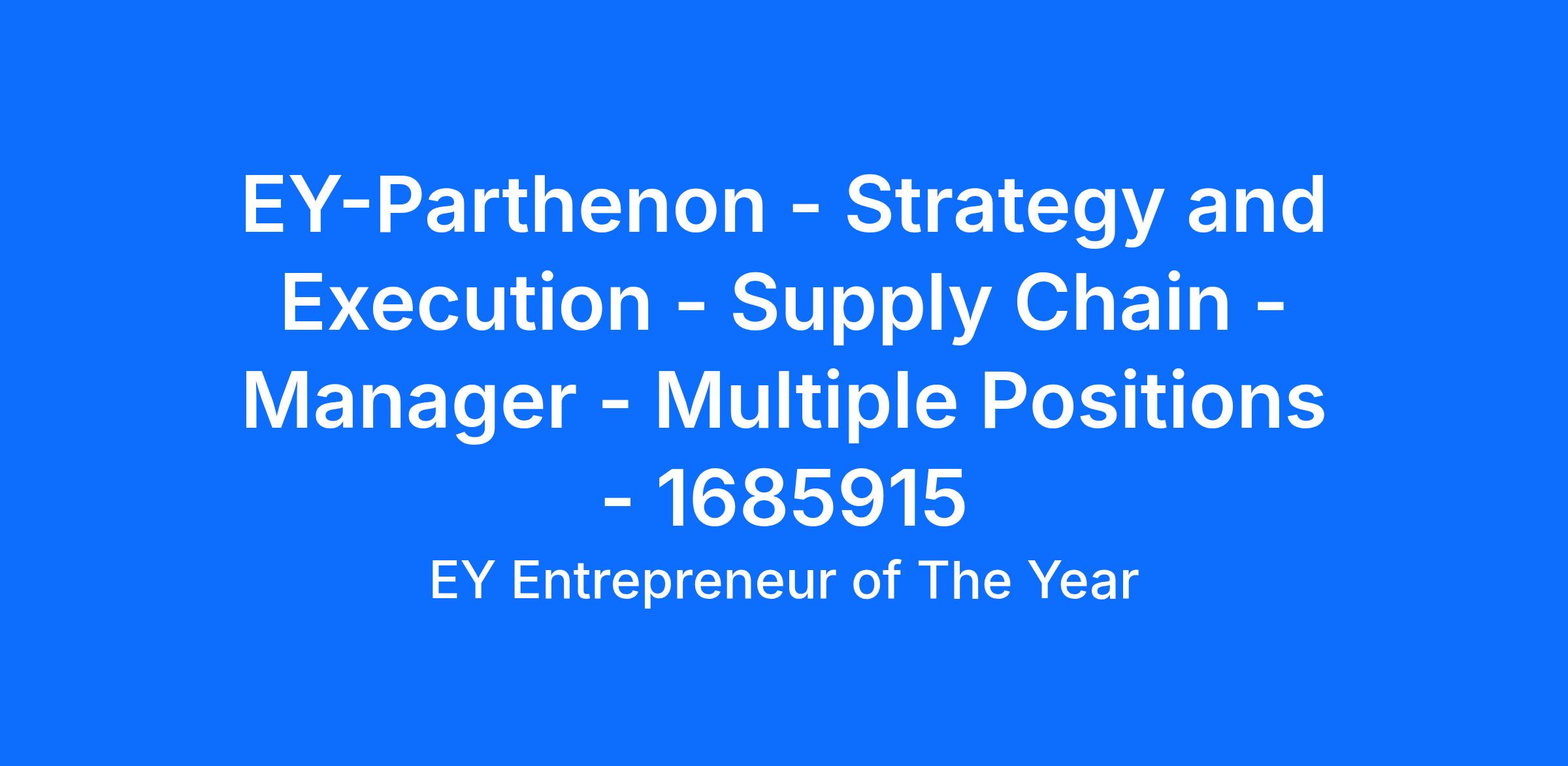 EY-Parthenon - Strategy and Execution - Supply Chain (Manager) (Multiple Positions) (1685915), Ernst & Young U.S. LLP, Detroit, MI.