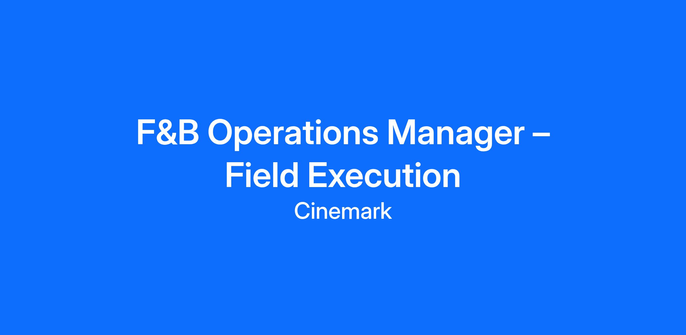This role reports to the Director of F&B Operations and is part of the F&B Operations Team within the Operations Department.