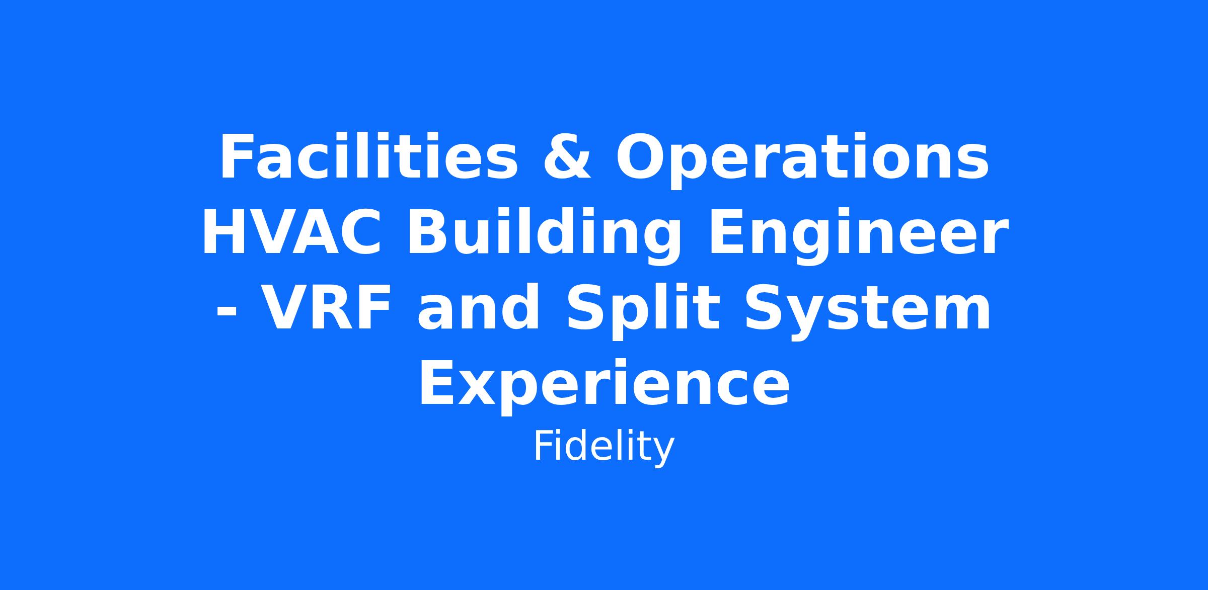 We are seeking an experienced Commercial HVAC Technician to service and maintain commercial HVAC systems including VRF, split systems, rooftop units, and related equipment. As a member of Fidelity’s Engineering Operations team, you will be directly responsible for ensuring that equipment operates reliably, and the uptime of the facility is supported. Reporting to the Engineering Manager, you’ll be self-performing or overseeing vendor-performed maintenance on critical equipment serving mission critical rooms and offices. The ideal candidate will have strong troubleshooting skills, commercial experience, and the ability to work independently and as part of a team. Key responsibilities include: