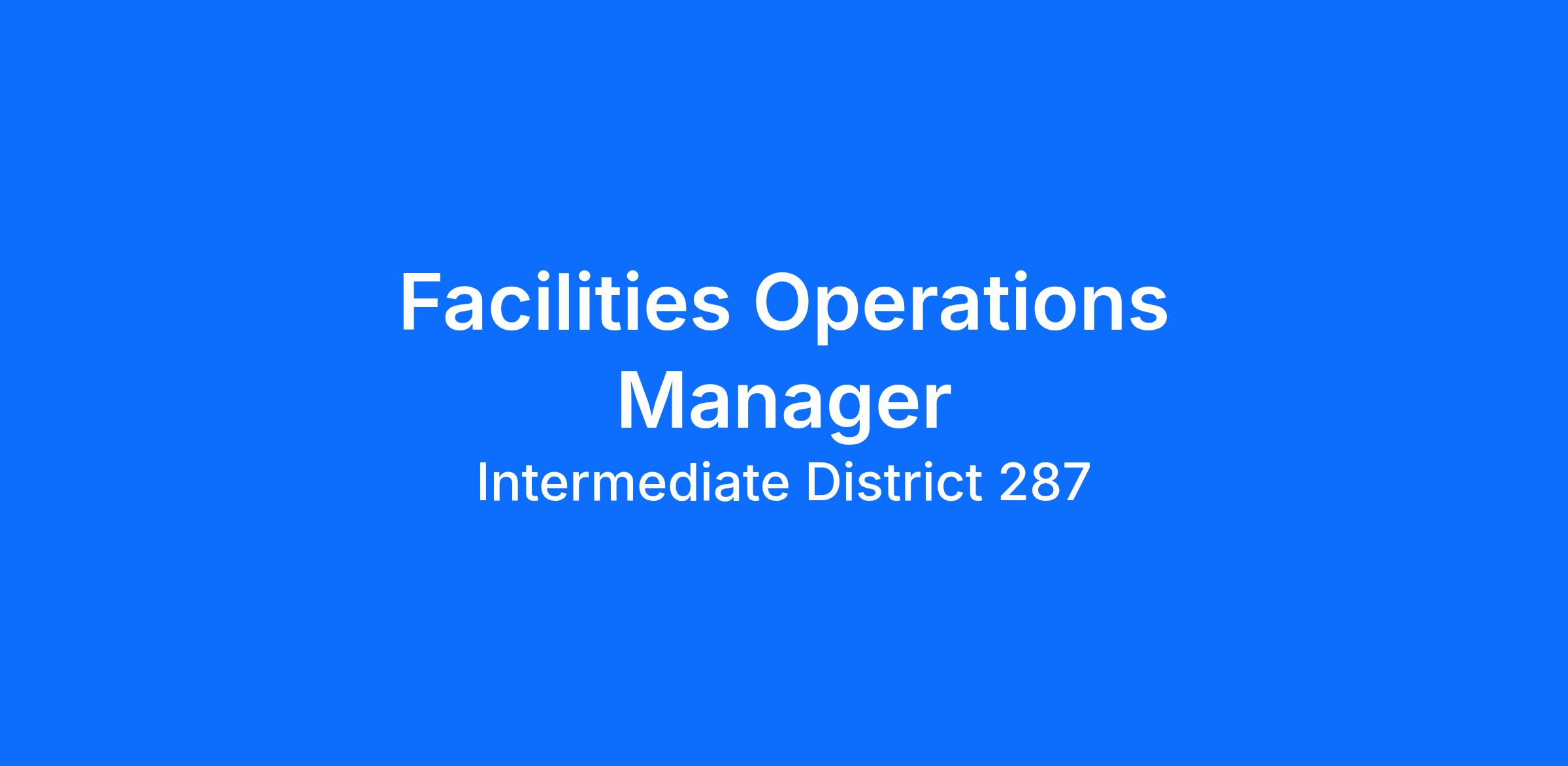 Intermediate District 287 is looking for a Facilities Operations Manager!