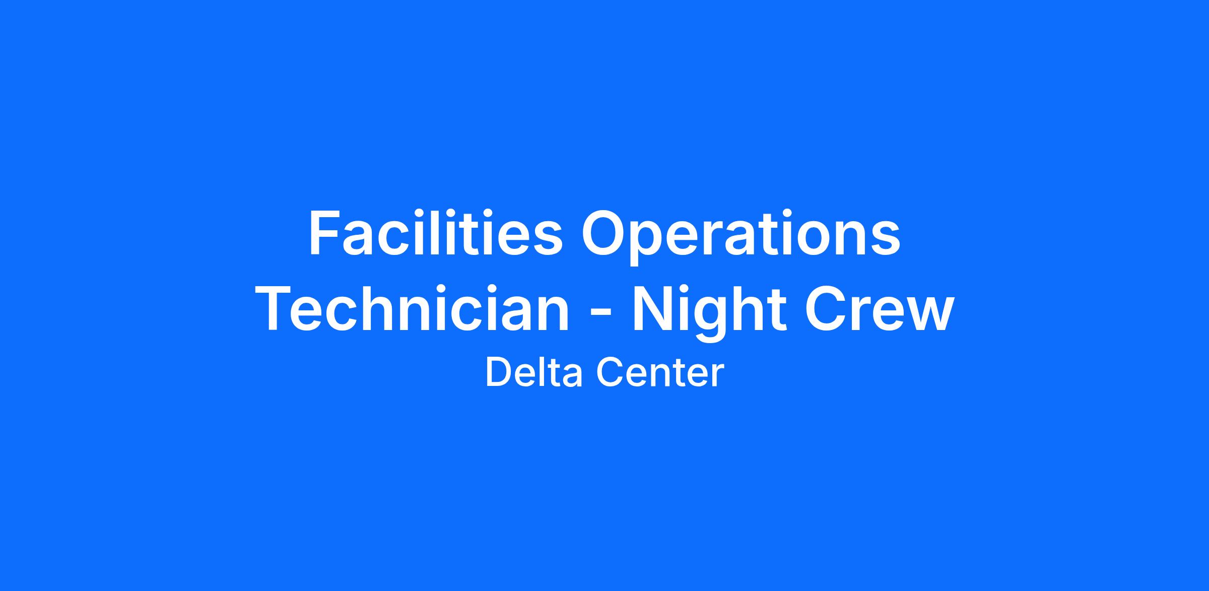 We are excited to announce a unique opportunity to join the Delta Center team as a Facilities Operations Technician. This position involves all aspects of event setup and tear down at Delta Center, including but not limited to, setting up chairs, tables, furniture, ice removal, pipe, and drape within a dynamic work environment. This is a full-time position that generally works 7:00pm - 5:00am, sometimes earlier or later, holidays, and weekends depending on business needs. $21.50 per hour
