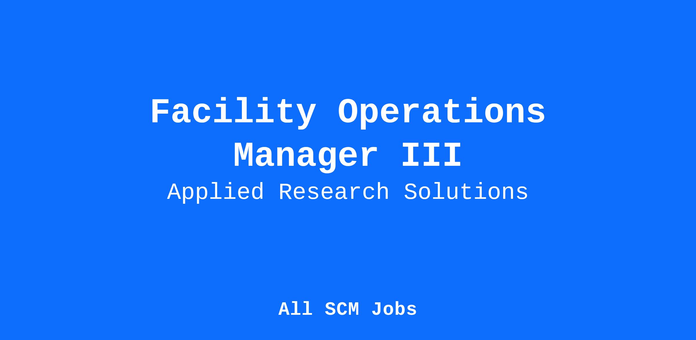 Applied Research Solutions is seeking a full-time Facility Operations Manager located at Lackland A.F.B. San Antonio, Texas. The Facility Manager’s primary function will be to track requested and scheduled projects relating to design and maintenance of the facility and supporting equipment (e.g. HVAC, Fire Alarm) while supporting CRYPTOLOGIC AND CYBER SYSTEMS DIVISION.