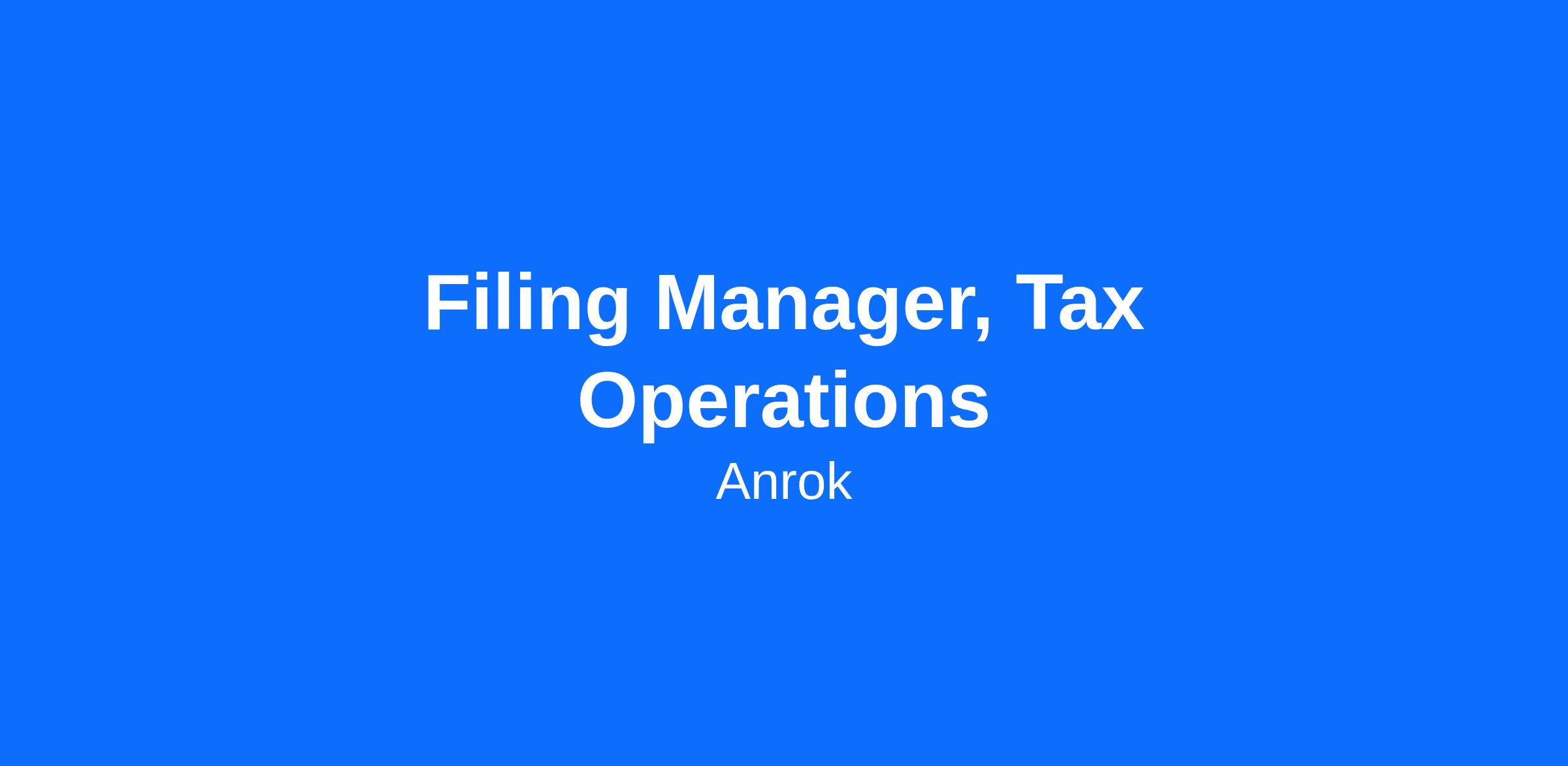 We’re looking for a sales tax Filing Manager to join our Tax Operations team with a proven track record of managing and growing teams, developing and implementing process improvements, and automation. This role will be responsible for hiring and managing filers and customer support team members, owning our monthly filing process, and driving accuracy and compliance in our tax filing processes by partnering with our internal Tax and Filing Engineering teams.