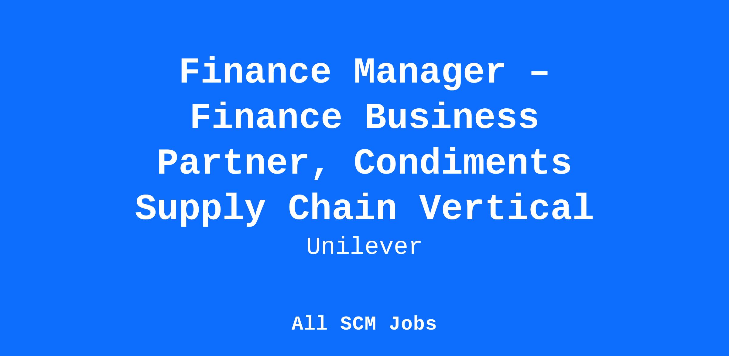 Join us as Finance Manager – Finance Business Partner, Condiments Supply Chain Vertical