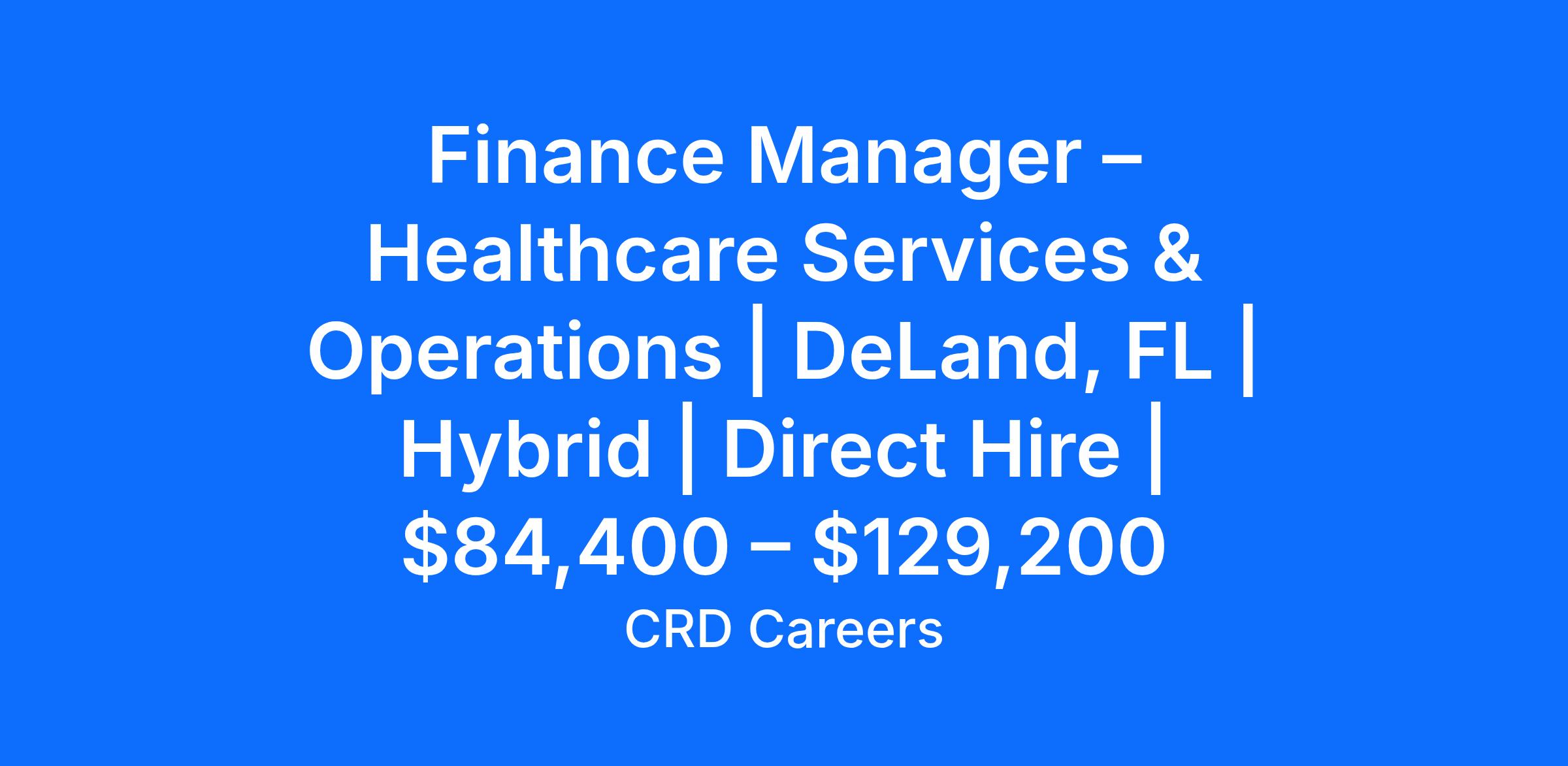 Finance Manager – Healthcare Services & Operations | DeLand, FL | Hybrid | Direct Hire | $84,400 – $129,200