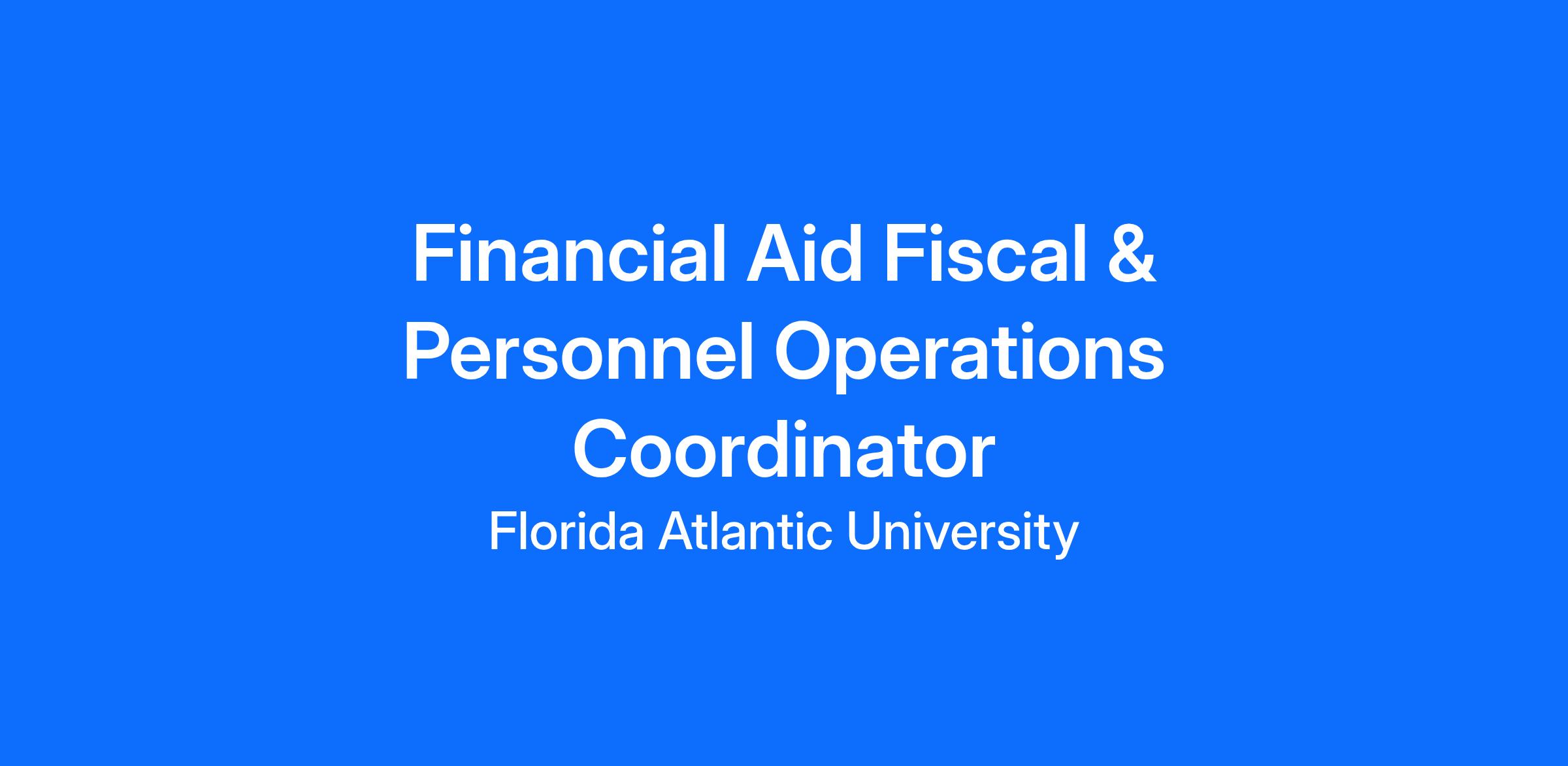 Florida Atlantic University is seeking a Financial Aid Fiscal & Personnel Operations Coordinator - Boca Raton, FL.
